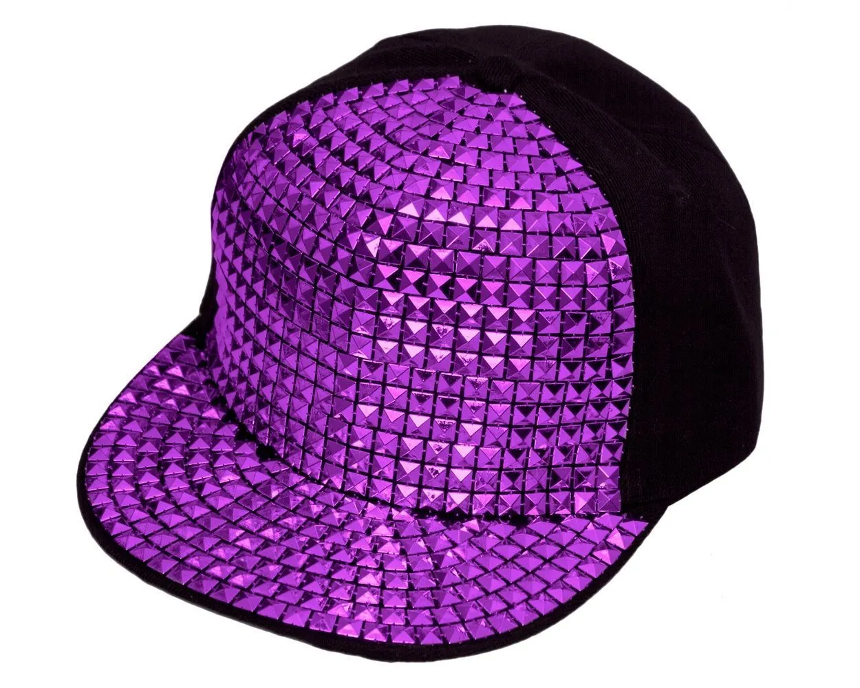 В стильной кепке черного цвета с фиолетовыми клепками Вы всегда будете привлекать к себе заслуженное внимание. Изделие имеет универсальный размер и декорировано блестящими клепками, которые будут сверкать и переливаться на свету. Кепка спасет Вас от яркого солнца и отлично подойдет для занятий спортом, длительных прогулок на природе или повседневного ношения. Также кепка будет хорошо смотреться на Вас на любой зажигательной вечеринке, подчеркивая Ваш яркий и дерзкий стиль.