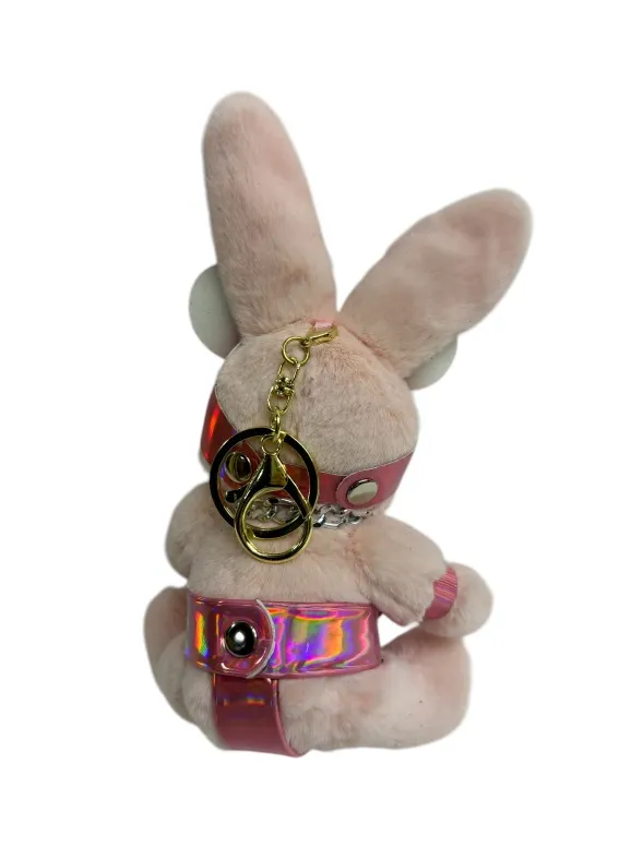 Хитрый зайчик в маске мышки с плетью – забавный и оригинальный аксессуар для любителей БДСМ и для всех страстных неординарных натур. Плеть снимается и может служить отдельным аксессуаром, например, украсит ключи. Игрушка оснащена карабином и кольцом, её можно носить в качестве брелока на ключах или сумке. Высота зайчика 18 см, очень удобный размер. Костюмчик выполнен из лаковой розовой голографической эко-кожи. Цвет зайчиков в ассортименте.