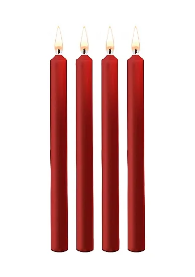 Teasing Wax Candles Large – набор из 4-х восковых свечей красного цвета. Усильте ощущения, увеличьте адреналин, и насладитесь беспрецедентным возбуждением, когда капающий горячий воск будет касаться кожи, не вызывая ожогов. Восковые BDSM-свечи в сочетании с повязкой на глазах или другим приспособлением для бондажа гарантируют увлекательное приключение всем участникам.