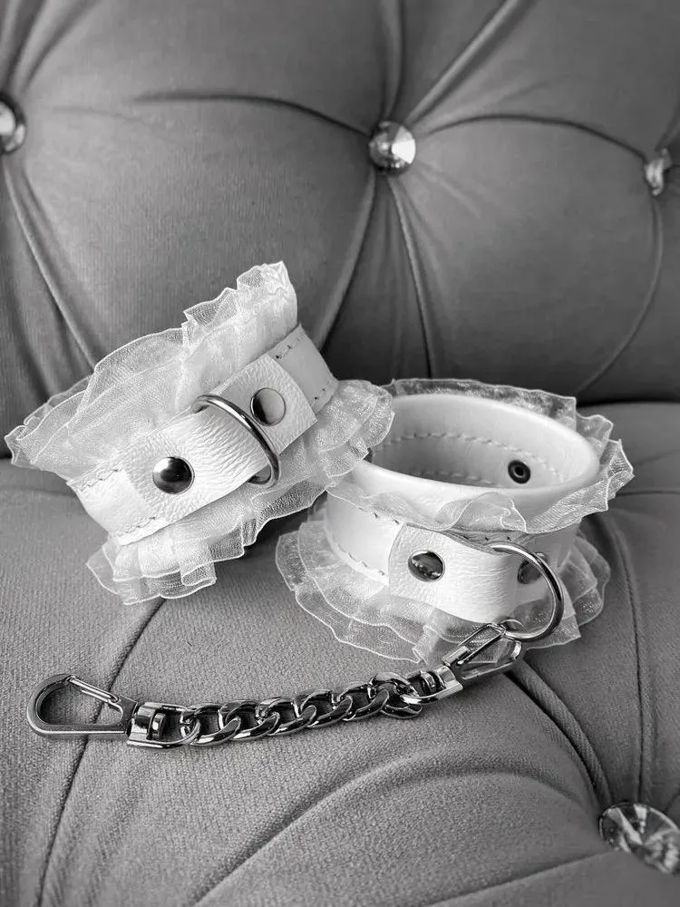 —Наручники белый кожа рюши