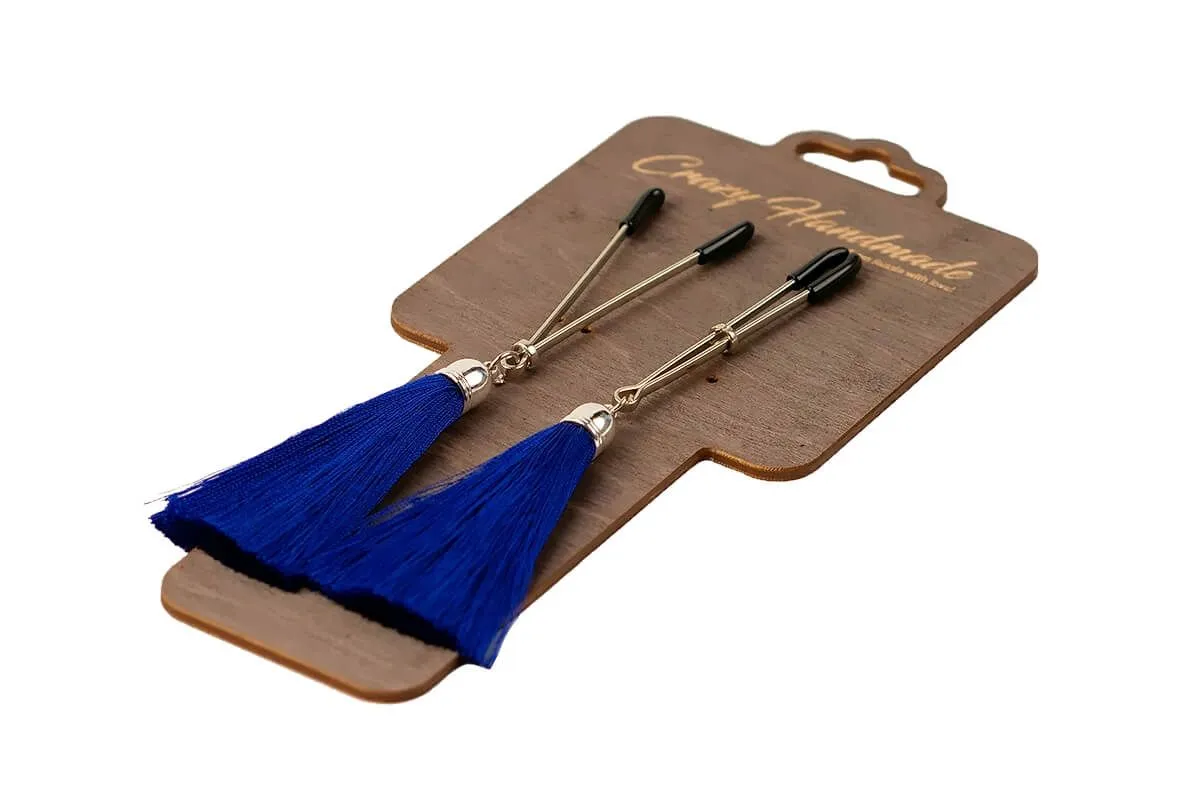 Зажимы-вилки на соски от бренда Pink Rabbit будут не только красивым интимным украшением, но и смогут сделать соски более чувствительными. Зажимы украшены красивыми шелковыми кисточками синего цвета, которые будут соблазнительно и маняще колыхаться при каждом Вашем движении. Передвигая на зажимах колечко, Вы сможете отрегулировать необходимую степень сжатия. После использования зажимов соски станут гораздо чувствительнее и каждое прикосновение к ним будет более ощутимым. Кончики зажимов покрыты мягким материалом, поэтому они не травмируют нежную кожу.