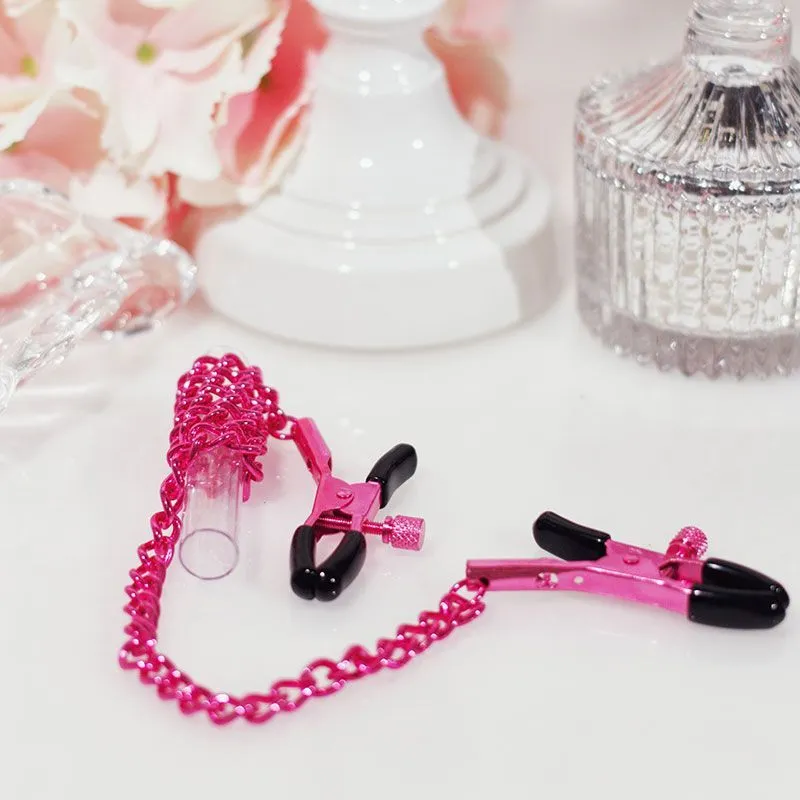 Зажимы на соски с цепочкой просты в использовании и предназначены как для Него, так и для Неё. Зажимы и цепочка выполнены из нержавеющей стали и алюминия. Они могут стать вашим пикантным секретом и обеспечить постоянную стимуляцию во время занятий любовью.