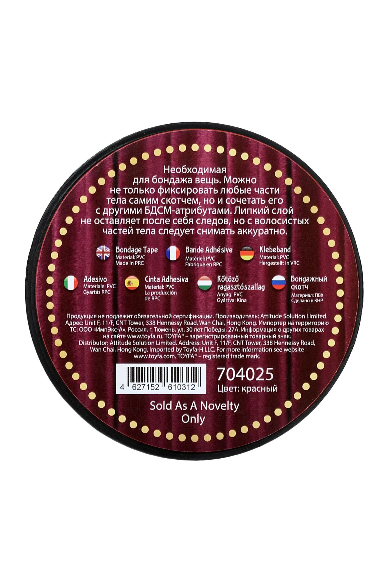 Необходимая для бондажа вещь. Можно не только фиксировать любые части тела самим скотчем, но и сочетать его с другими БДСМ-атрибутами. Липкий слой не оставляет после себя следов, но с волосистых частей тела следует снимать аккуратно. Длина 15м, Ширина 5 см