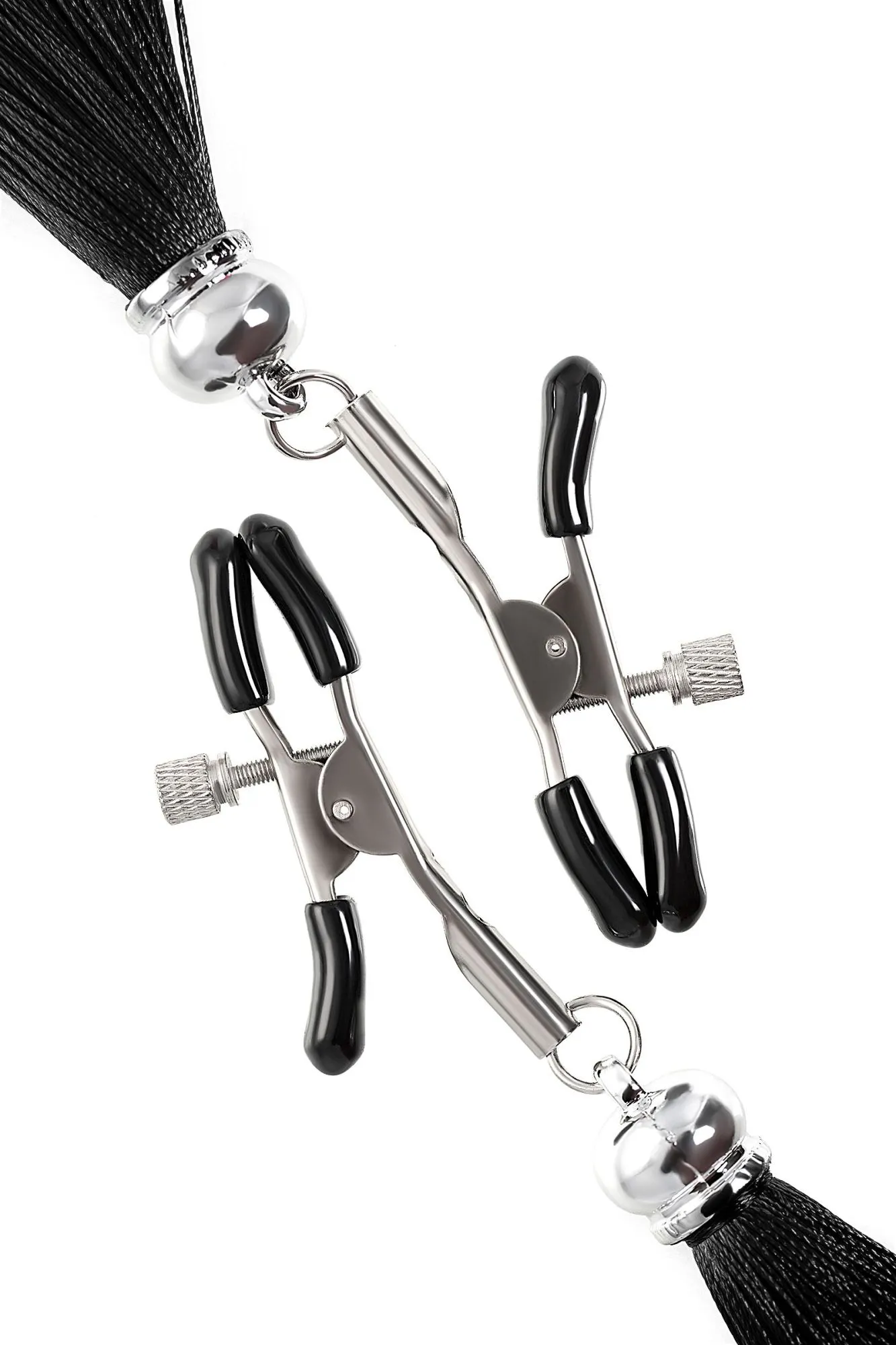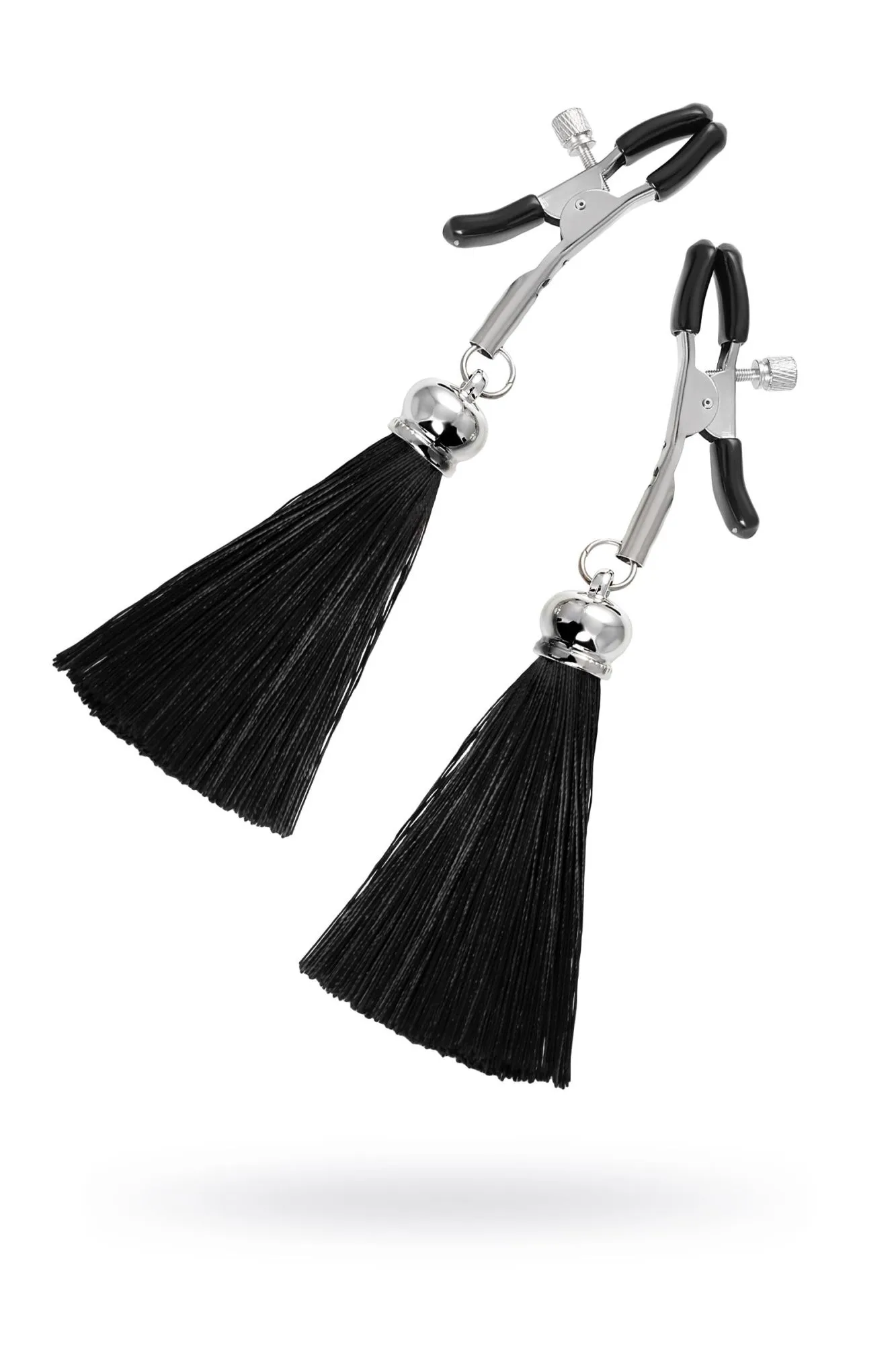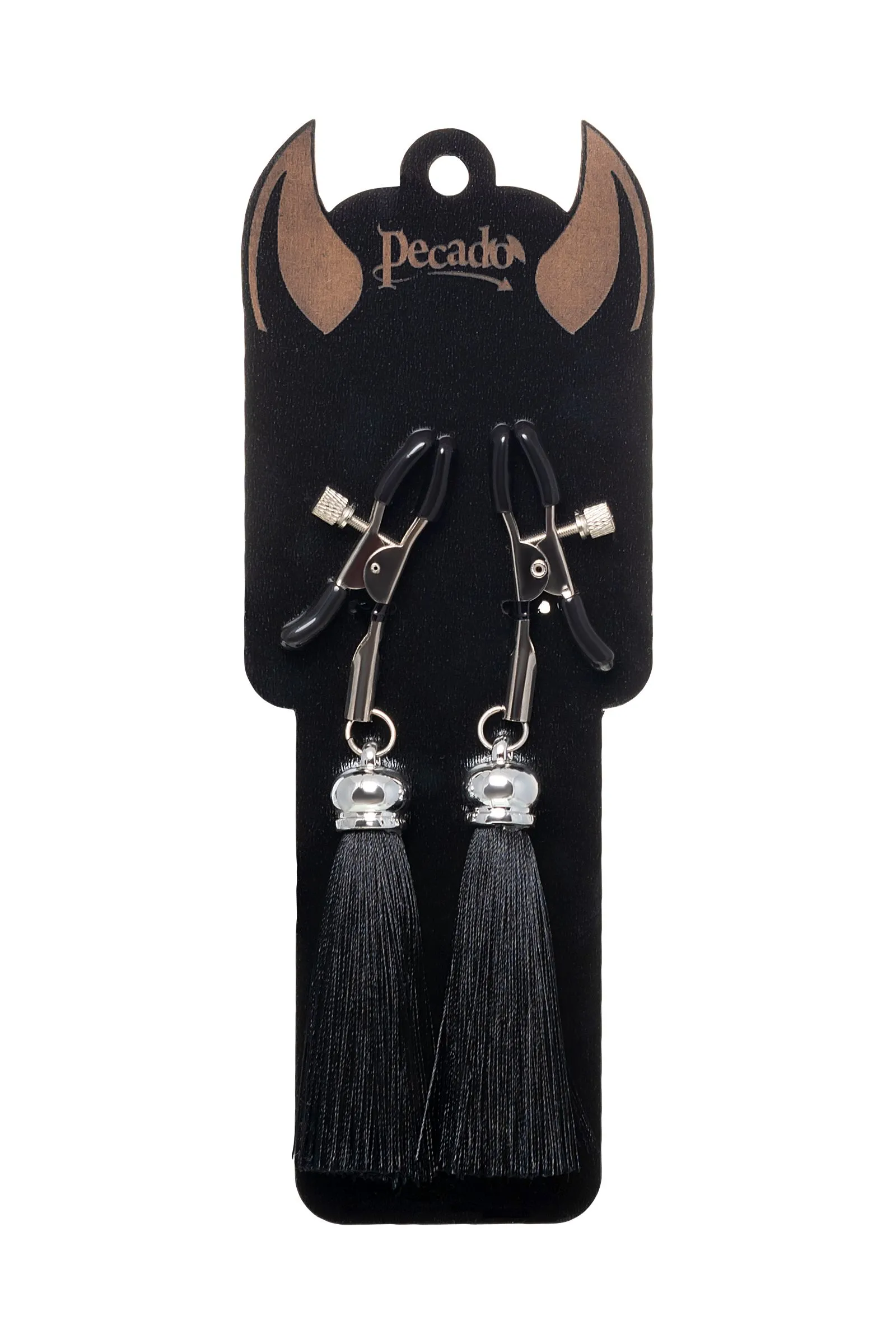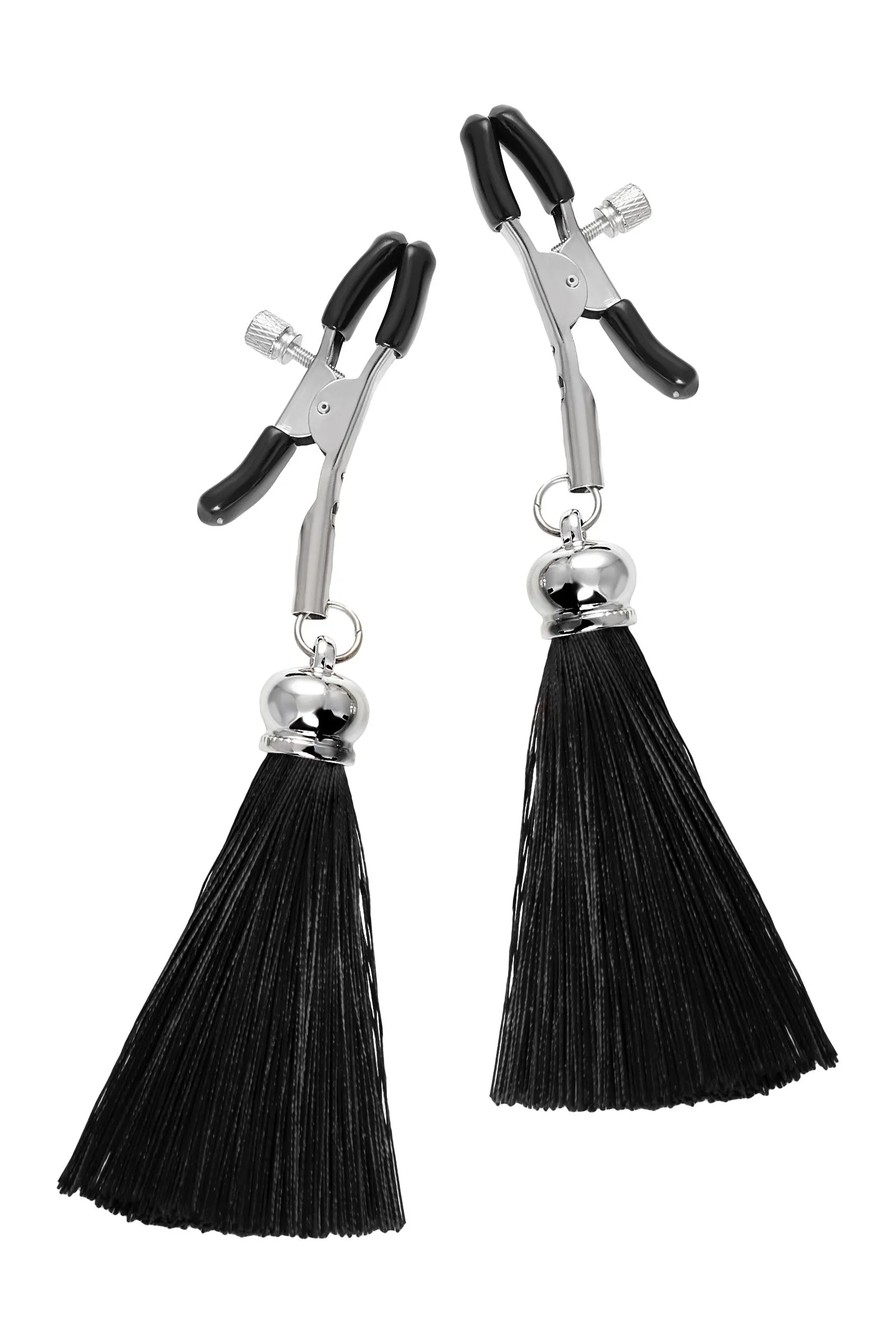Зажимы на соски Pecado BDSM, «Прищепки», с кисточками из шелка, металл, черные