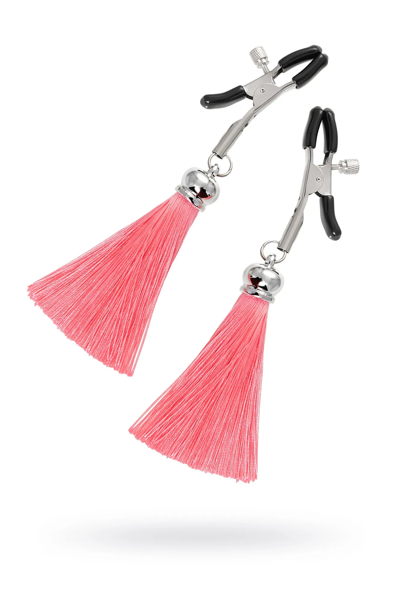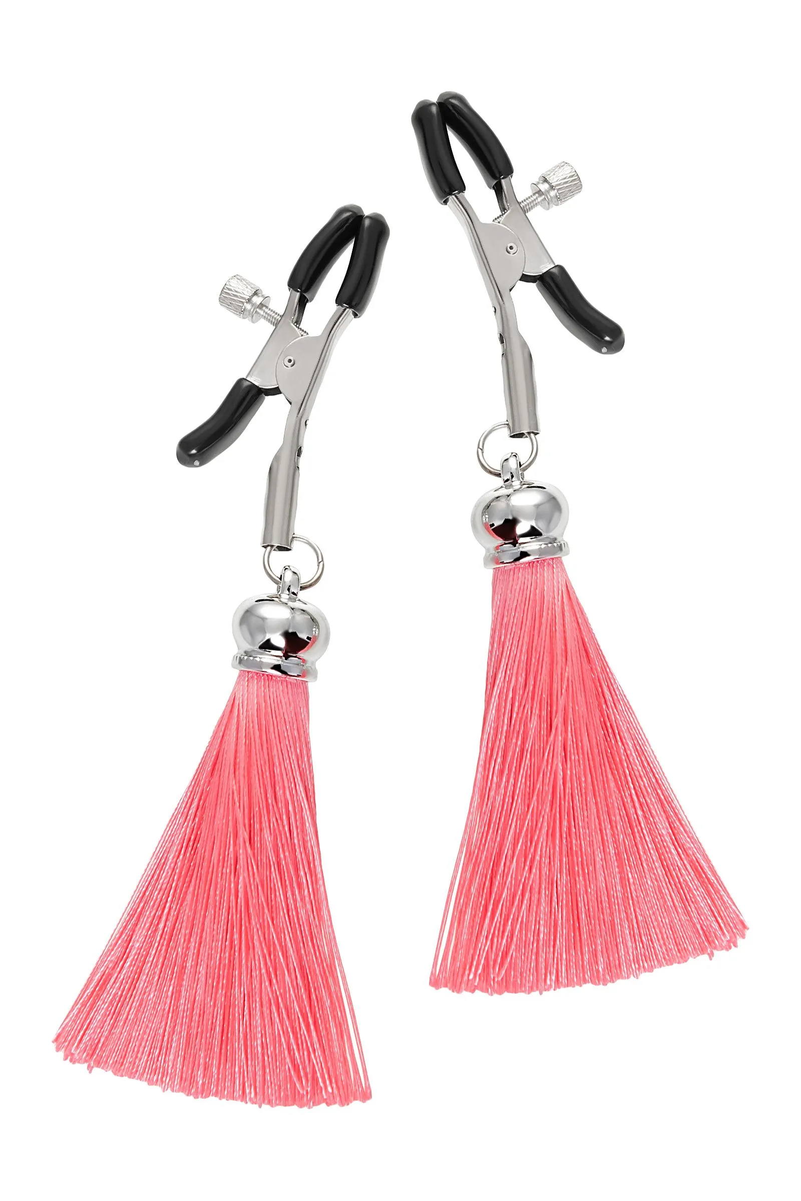 Зажимы на соски Pecado BDSM, «Прищепки», с кисточками из шелка, металл, розовые