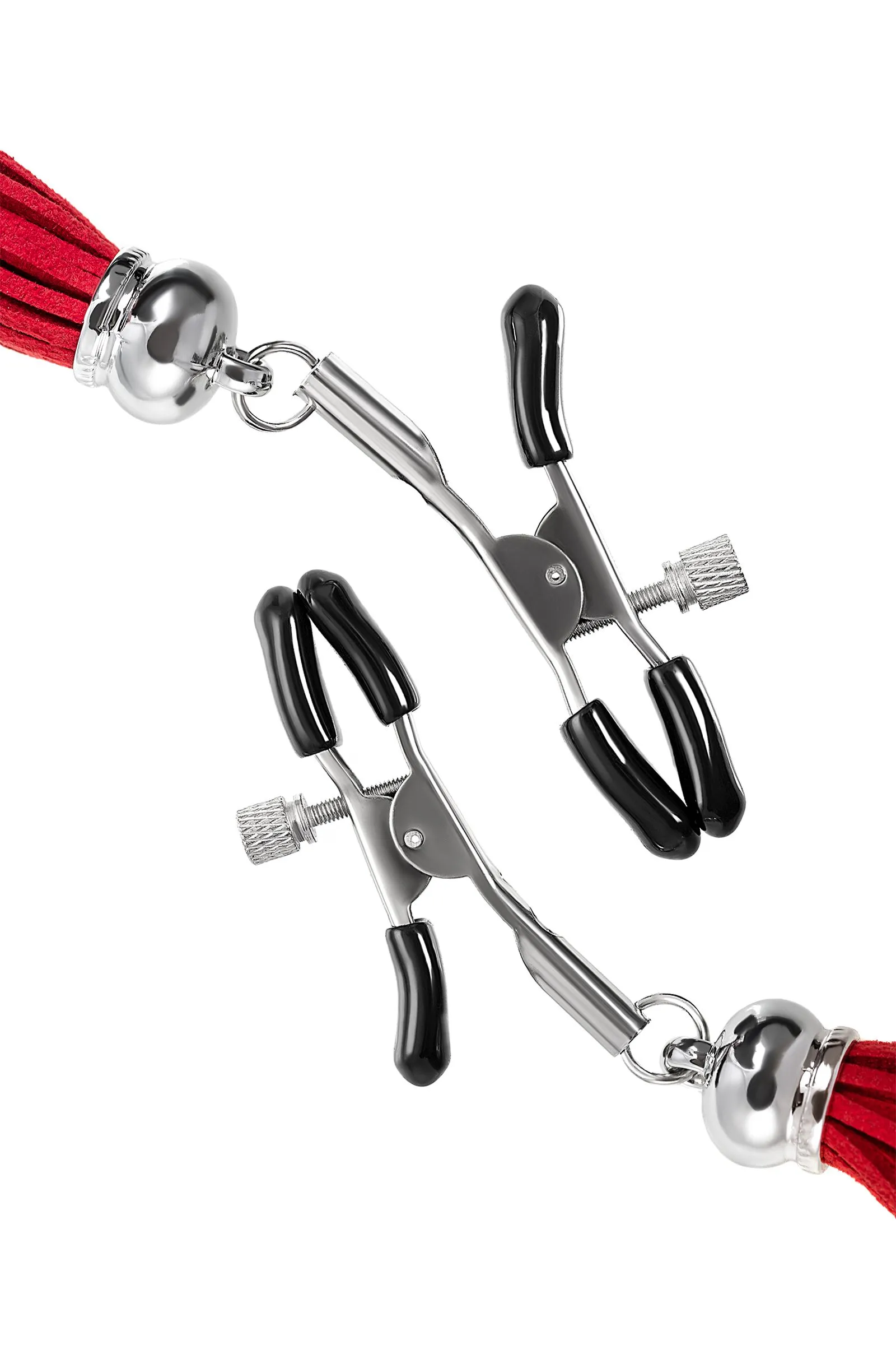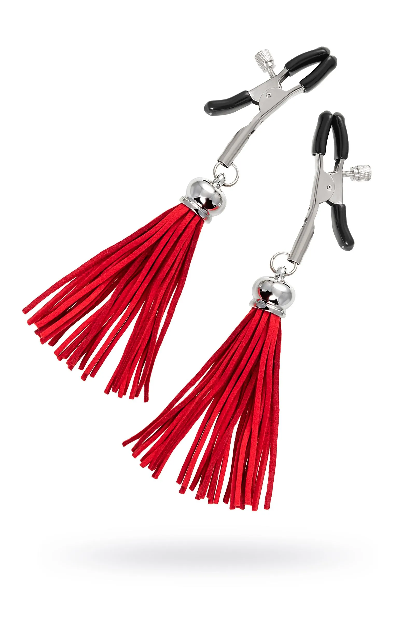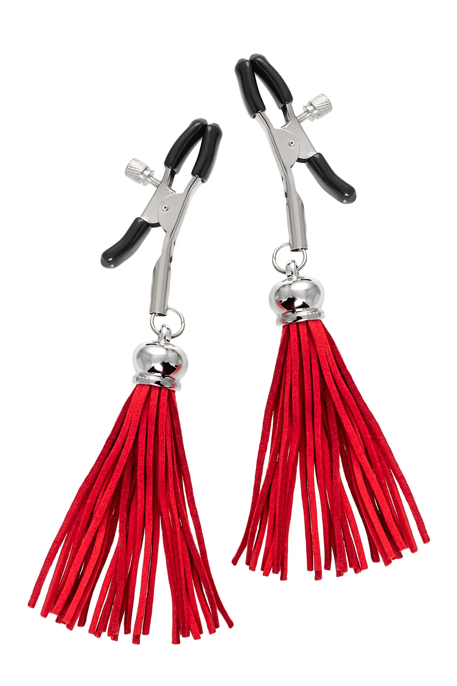 Зажимы на соски Pecado BDSM, «Прищепки», с кисточками из замши, металл, красные