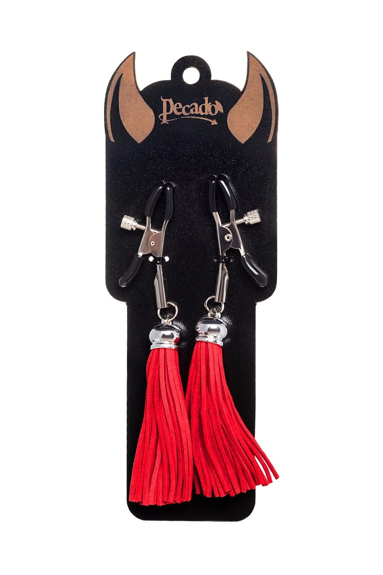 Хотите усилить ощущения от страстных игр с партнером? Увеличить степень возбуждения до невозможного можно с помощью зажимов-прищепок ручной работы от Рecado. Невероятно сексуальный аксессуар пробудит фантазию и повысит чувственность эротических зон. Мягкие резиновые накладки оберегают соски от повреждений. Металлический винт регулирует степень сжатия зажимов: от нежно-приятного до сильно-грубого. На концах черные резиновые наконечники, для безопасного воздействия на нежные участки тела. Компактный размер удобно вмещается как в женскую, так и в мужскую руку. Кисточки из натуральной замши не только визуально украшают эротический атрибут, но и еще утяжеляют его. Для самых смелых и искушенных любителей доминировать и подчиняться. ● Ручная работа. ● Надежная высококачественная фурнитура. ● 100% натуральная замша. ● Общая длина зажимов 14 см, длина кисточки 8,5 см. ● Не требуют специального ухода.