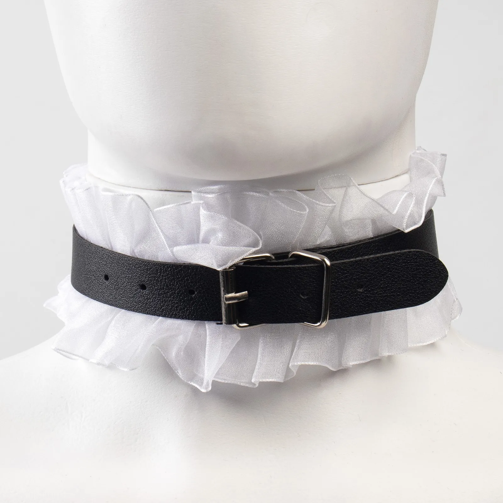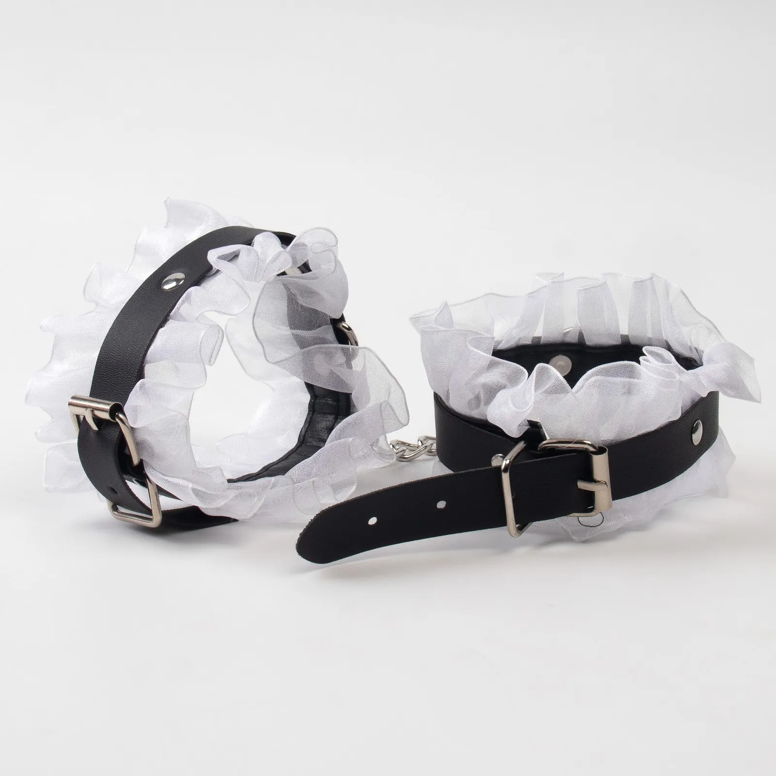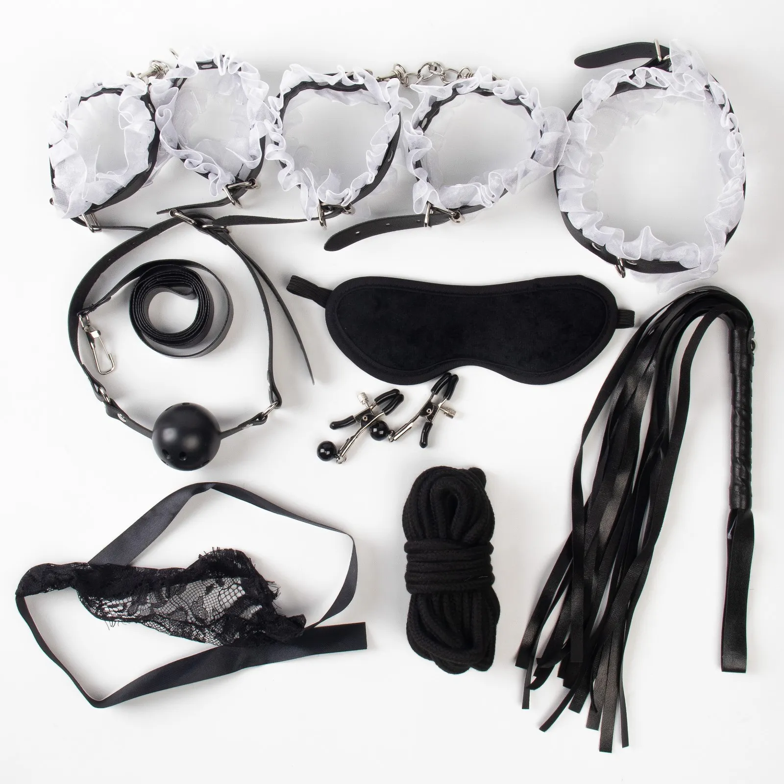 Эротический БДСМ набор Оки-Чпоки, с белым кружевом, чёрный, экокожа, 9 предмето