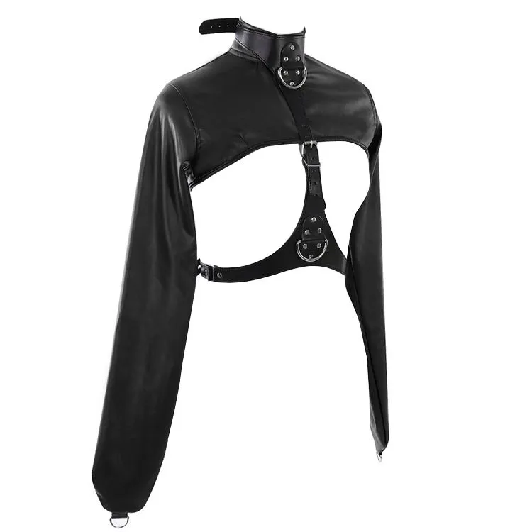 Бондажный комплект от бренда Lapin Rose позволит Вам обездвижить руки своей партнерши и зафиксировать их в нужном положении. На рукавах без отверстий для кистей есть небольшие полукольца, которые можно соединить между собой цепочкой или карабином (в комплект не входят). На ошейнике также есть полукольца более крупного размера, к которым можно присоединить другие бондажные аксессуары, чтобы разнообразить сценарии игры. Размер жакета регулируется при помощи ремешков с пряжками.