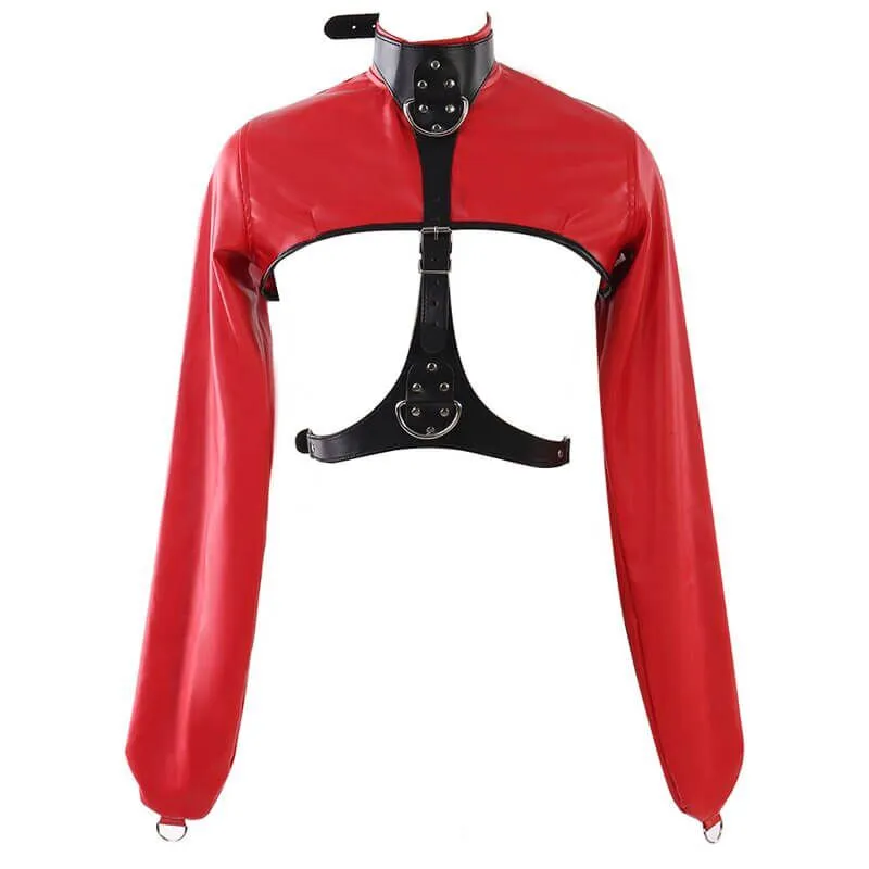 Бондажный комплект от бренда Lapin Rose позволит Вам обездвижить руки своей партнерши и зафиксировать их в нужном положении. На рукавах без отверстий для кистей есть небольшие полукольца, которые можно соединить между собой цепочкой или карабином (в комплект не входят). На ошейнике также есть полукольца более крупного размера, к которым можно присоединить другие бондажные аксессуары, чтобы разнообразить сценарии игры. Размер жакета регулируется при помощи ремешков с пряжками.