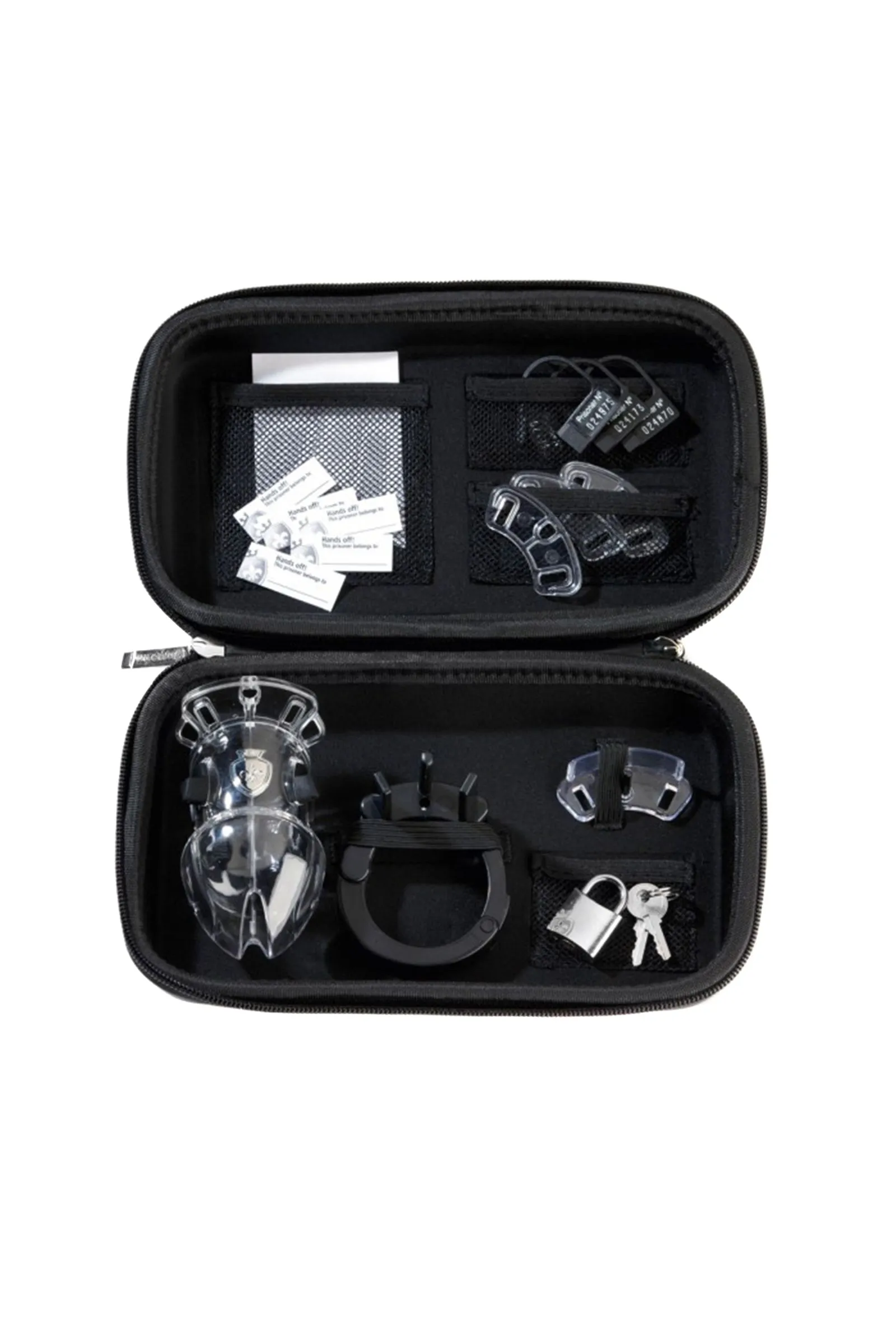 С электростимулятором Mystim Pubic Enemy № 2 каждый нарушитель интимного спокойствия будет лишен сексуальной свободы и наказан по всей строгости. Просто заприте пенис в клетке из ABS-пластика и применяйте к нему любые меры, которые считаете нужными: подключайте к блоку электроимпульсов и пытайте разрядами тока разной интенсивности — от легкого покалывания и щекотки до ощутимых подергиваний и ритмичной пульсации. Конструкция с уретральным зондом позволит вам стимулировать член не только снаружи, но и внутри. Не верьте мольбам «преступника» о пощаде, на самом деле ему нравится эта игра. Во время разовых экспериментов вы можете запирать клетку пластиковыми пломбами с идентификационным номером заключенного. А если планируете использовать клетку для регулярного ношения, закройте ее на металлический замок и не забудьте вставить в держатель табличку с указанием имени собственника, владеющего содержимым. C Mystim Pubic Enemy № 2 дни его сексуальной свободы окончены, но отсчет новым ощущениям только начат. Безопасный для здоровья материал Регулируемая длина и диаметр для любого размера члена Съемные проводящие элементы В комплект входят металлический замок с 2-мя ключами, 5 пластиковых пломб, кабель и 10 табличек с надписью «Руки прочь! Этот заключенный принадлежит ___» Стильный бокс для хранения Подключается к блоку электроимпульсов через Mystim-Plug ПРИМЕЧАНИЕ: Функция E-stim работает только с базовым блоком Tension Lover или Cluster Buster (приобретаются отдельно) Внимательно ознакомьтесь с инструкцией перед использованием!