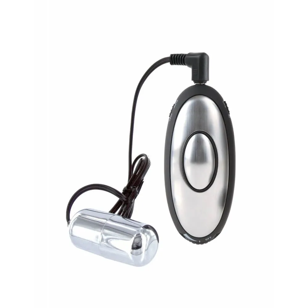 Shock Therapy Silver Bullet - это пуля с функцией электростимуляции, изготовленная из пластика. Выберите на пульте нужную интенсивность и наслаждайтесь волнительными покалываниями или мощной пульсацией. Выносной пульт управления также можно использовать как компактный электростимулятор. Просто переключите его из режима OUT в режим IN. Стимулятор работает от одной батарейки, которая уже входит в комплект. В подарок Вы получите специальную маску на глаза.