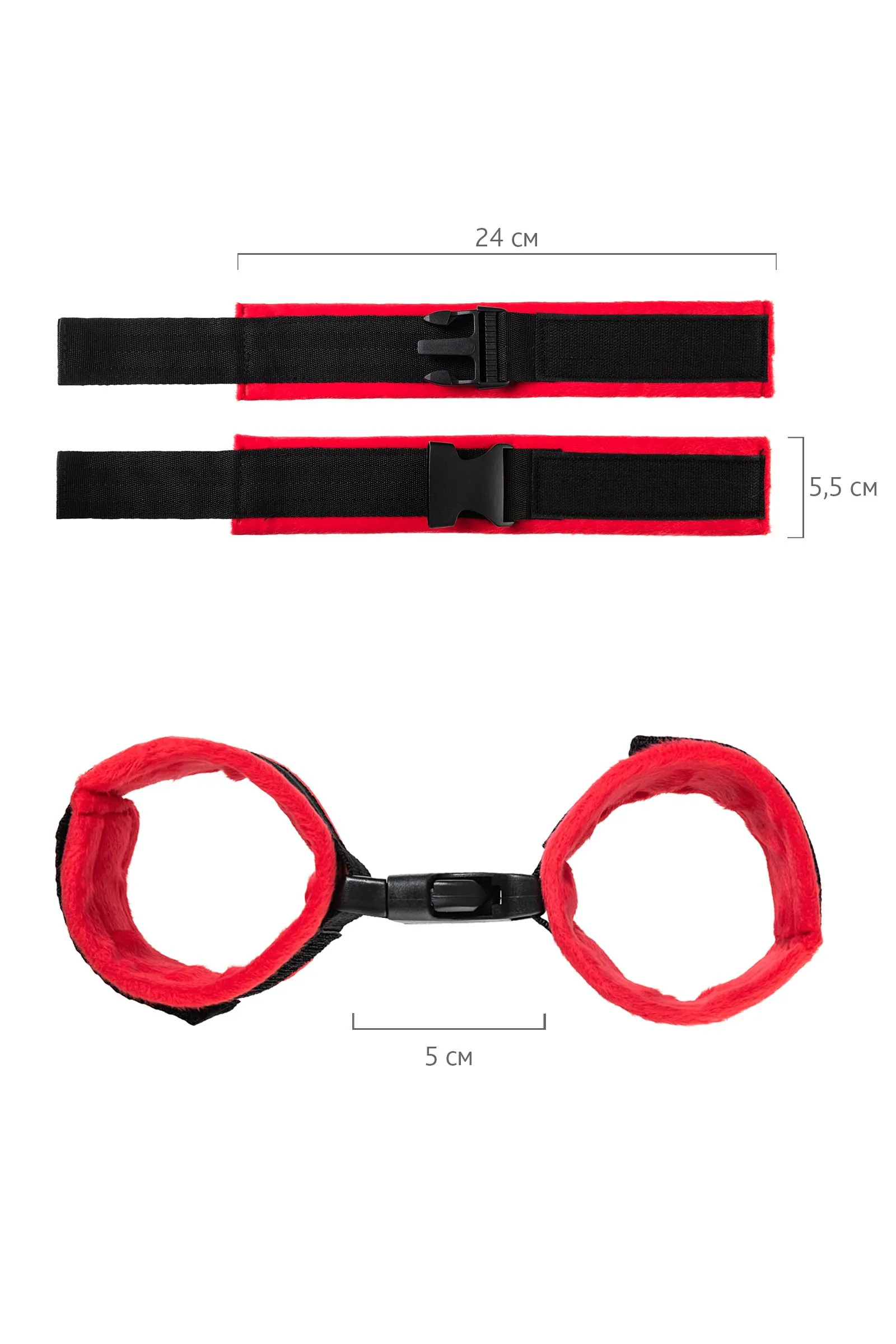 Наручники Anonymo #0106, велюр, красные, 24 см