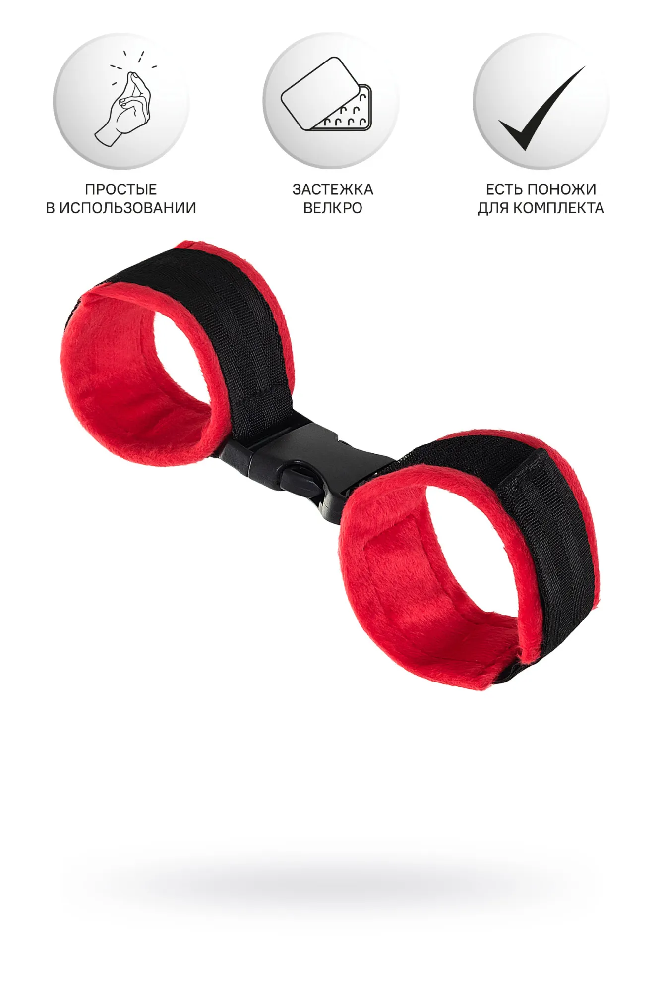 —Наручники Anonymo #0106, велюр, красные, 24 см
