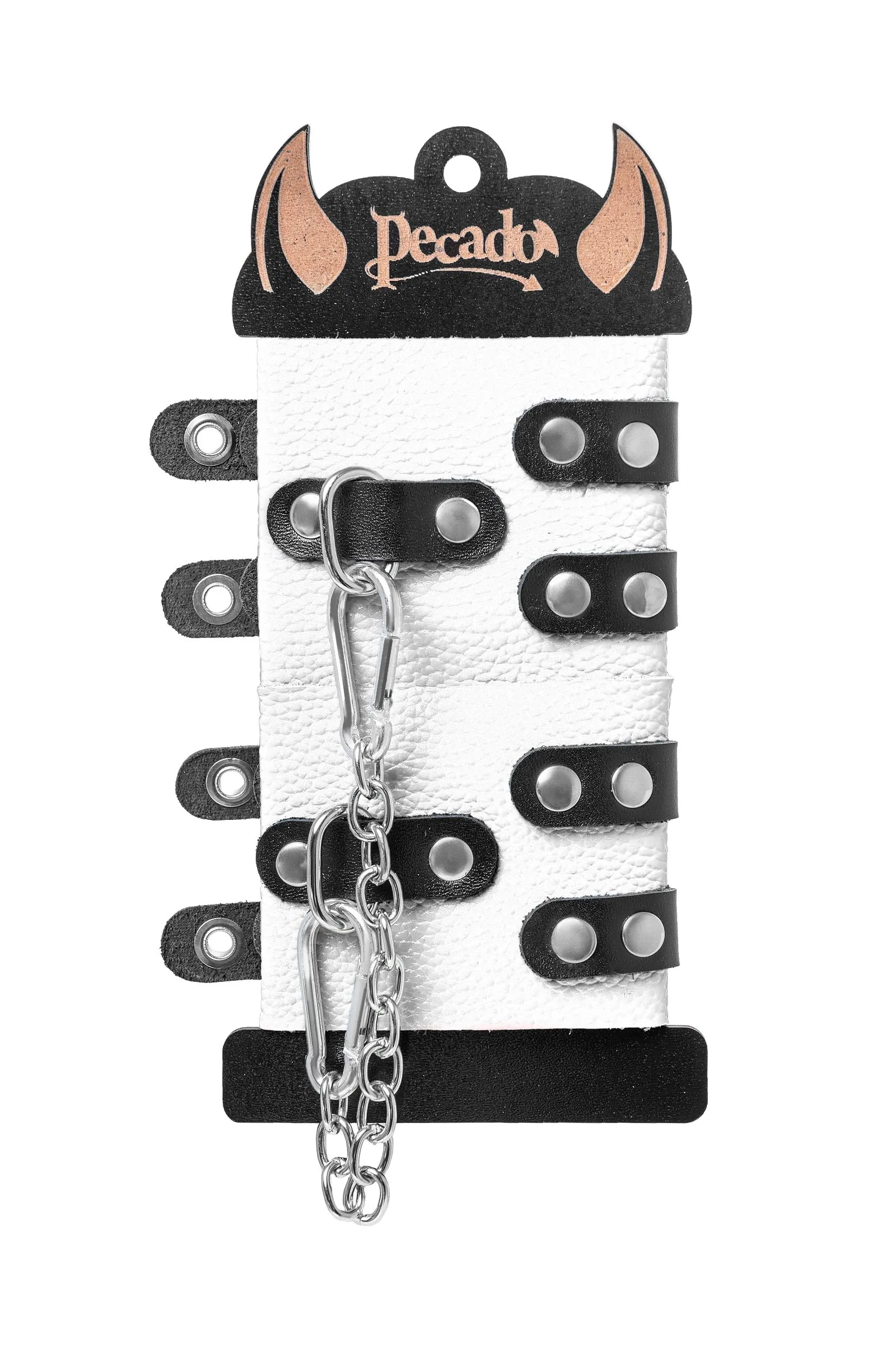 Основатели бренда уверены: лучший способ избавиться от искушения - поддаться ему! Мягкие, белые, кожаные наручники с двумя чёрными, жёскими ремнями могут стать стильным аксессуаром, а могут послужить вашим целям по своему прямому назначению. Частичное обездвиживание и невозможность двигать руками дают вам полную власть над партнером – взрослые игры для взрослых. Наличие двух колец и карабинов, соединенных между собой металлической цепочкой, позволяет использовать изделие как раздельно – аксессуар-манжеты, так и как наручники для фиксации. К широким металлическим кольцам также можно присоединить и другие аксессуары при помощи карабинов. Благодаря универсальному размеру наручники могут использоваться и мужчинами, и женщинами. Pecado BDSM – российский бренд, использующий высококачественные материалы и надежную, проверенную временем фурнитуру. Все изделия изготавливаются вручную из натуральной кожи, безопасный и экологичный материал не оставляет повреждений на запястьях. Натуральная кожа, металлические крепления и ремешки дают уверенность в надежной фиксации, устойчивости к механическим нагрузкам и долговременном использовании. ● 100% натуральная кожа. ● Ручная работа. ● Износостойкий, тактильно приятный материал. ● Надежная высококачественная фурнитура. ● Универсальный размер. ● Ширина манжет - 7см Длина манжет - 18см Длина сцепки - 17см