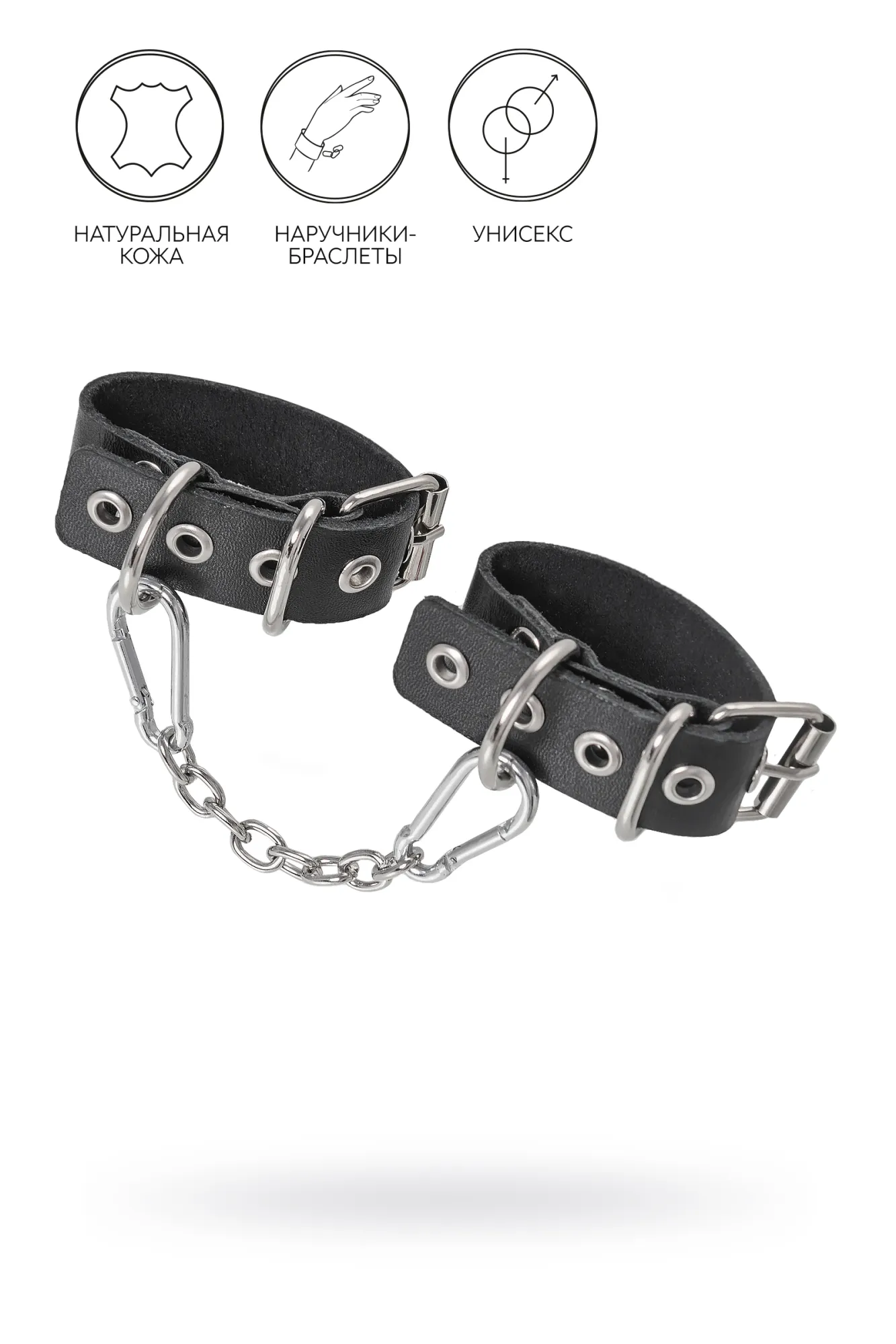 Брутальные наручники из одного ремешка от Pecado – отличный подарок партнеру к любому случаю. Во-первых, они незаменимая вещь для жестких ролевых игр. Во-вторых, отличный аксессуар-браслет на руку для повседневного и тематического look-а. Сексуальный атрибут изготовлен российским производителем. Специальная технология выделки кожи обеспечивает хорошую износостойкость. Черный материал прекрасно прилегает к телу и не оставляет следов. Подходят и мужчинам, и женщинам. Наручники декорированы большими стальными кольцами. Металлическая фурнитура высокого качества обеспечивает надежную фиксацию. Манжеты фиксируются между собой благодаря съемной, короткой цепочке. При желании ее можно заменить на другой необходимый аксессуар. ● 100% натуральная кожа. ● Ручная работа. ● Износостойкий, тактильно приятный материал. ● Надежная высококачественная фурнитура. ● Универсальный размер. ● Длина ремешка – 23,5 см, ширина ремешка - 2,5 см, длина сцепки – 14 см.