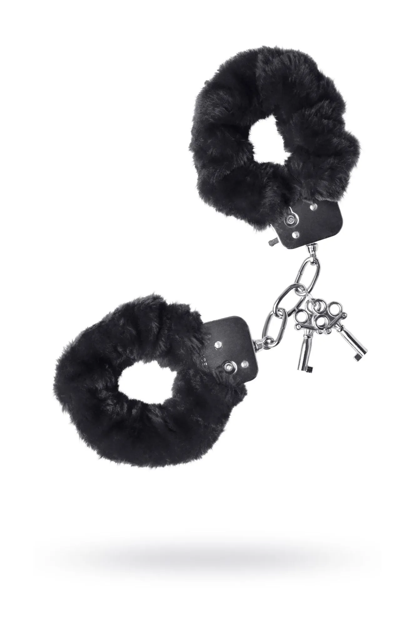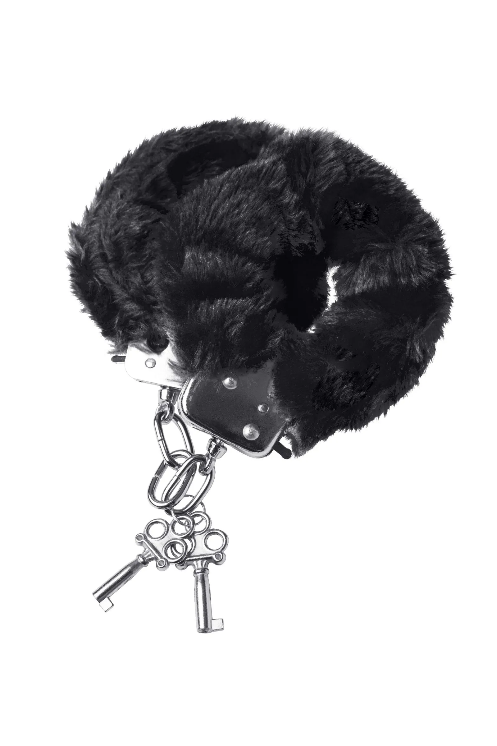 Наручники с металлическим основанием, декорированные чернымм искусственным мехом. С 2 ключами в комплекте. Регулируемый механизм позволяет сковывать как женские, так и мужские руки. На случай утери ключей или необходимости быстрого освобождения, предусмотрен рычажок быстрого открытия.