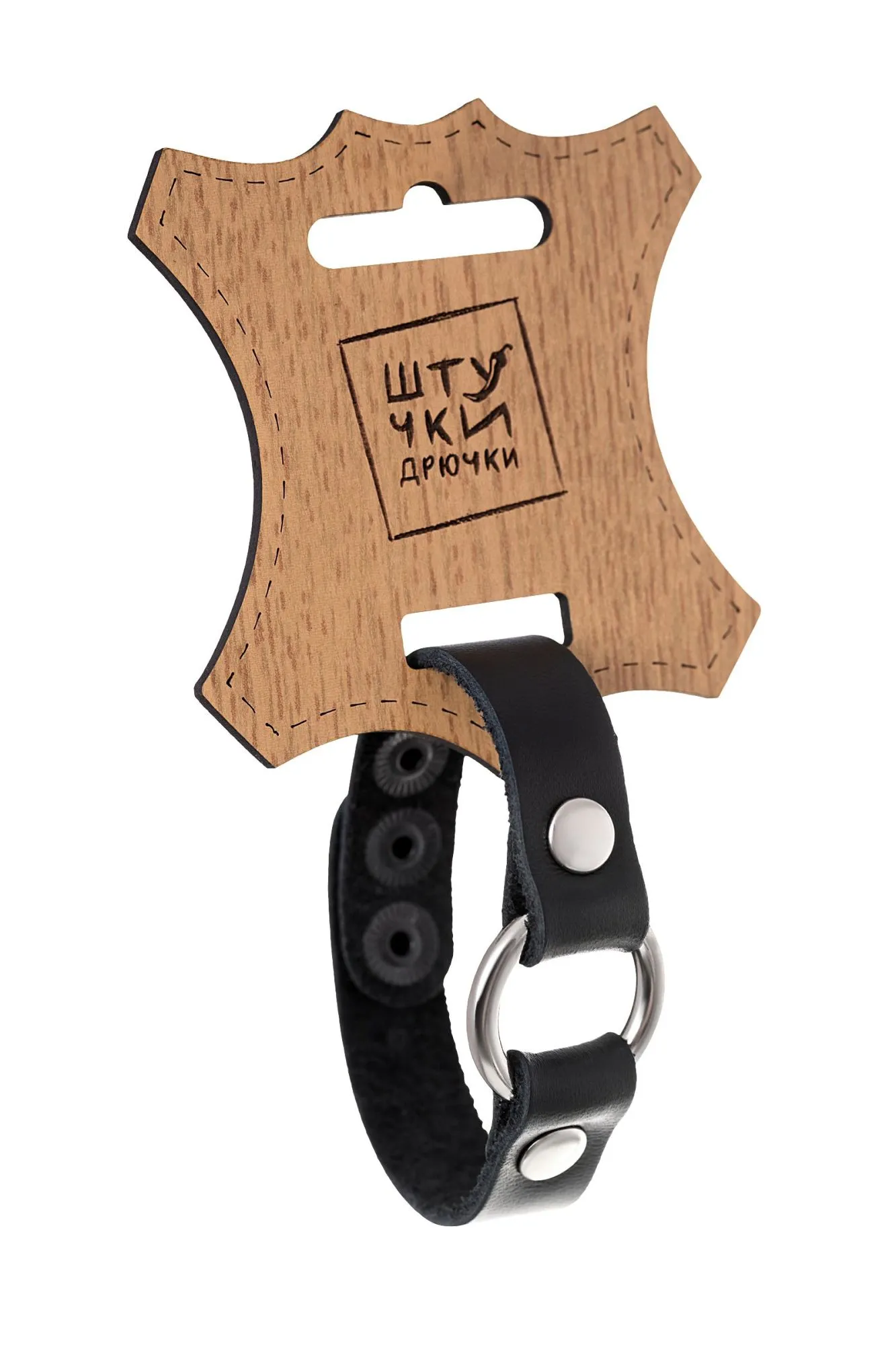 —Браслет Штучки-Дрючки с кольцом, кожанный, черный