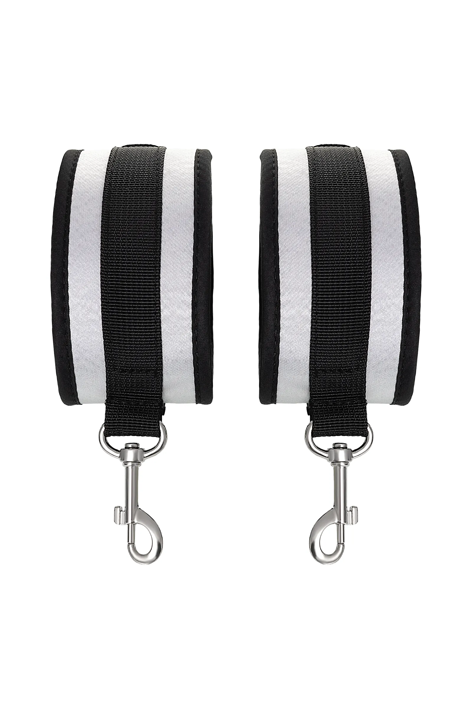 Оковы — классический предмет для игры в подчинение, обязательный для начинающих и опытных поклонников БДСМ. Блестящий во всех смыслах аксессуар для ограничения свободы – сатиновый материал поблескивает, когда на него падает свет. Необычное сочетание серебристого и черного, совсем нехарактерное для классического исполнения аксессуаров в стиле БДСМ, придает изюминку и новизну. Подчиненный с таким аксессуаром выглядит неотразимым. Застежка велкро позволяет зафиксировать ноги любого размера. Между собой поножи скрепляются карабинами, практически не оставляя свободы действий. Никакого послабления, только полное подчинение своему Доминанту. Используйте дополнительно цепочку для расширенных возможностей фиксации положения ног. Начните игру в подчинение с этим аксессуаром, и вы поймете, как развивать свою чувственность с помощью ограничения свободы одного из партнеров. Дополните комплект аксессуарами — ошейником, кляпом, наручниками и продемонстрируйте что значит грубое обращение и полный контроль над свободой. Материал: полиэстер, полипропилен Цвет: черно-серебристый Длина: 28,5 см Ширина: 5,5 см Длина сцепки: 8 см