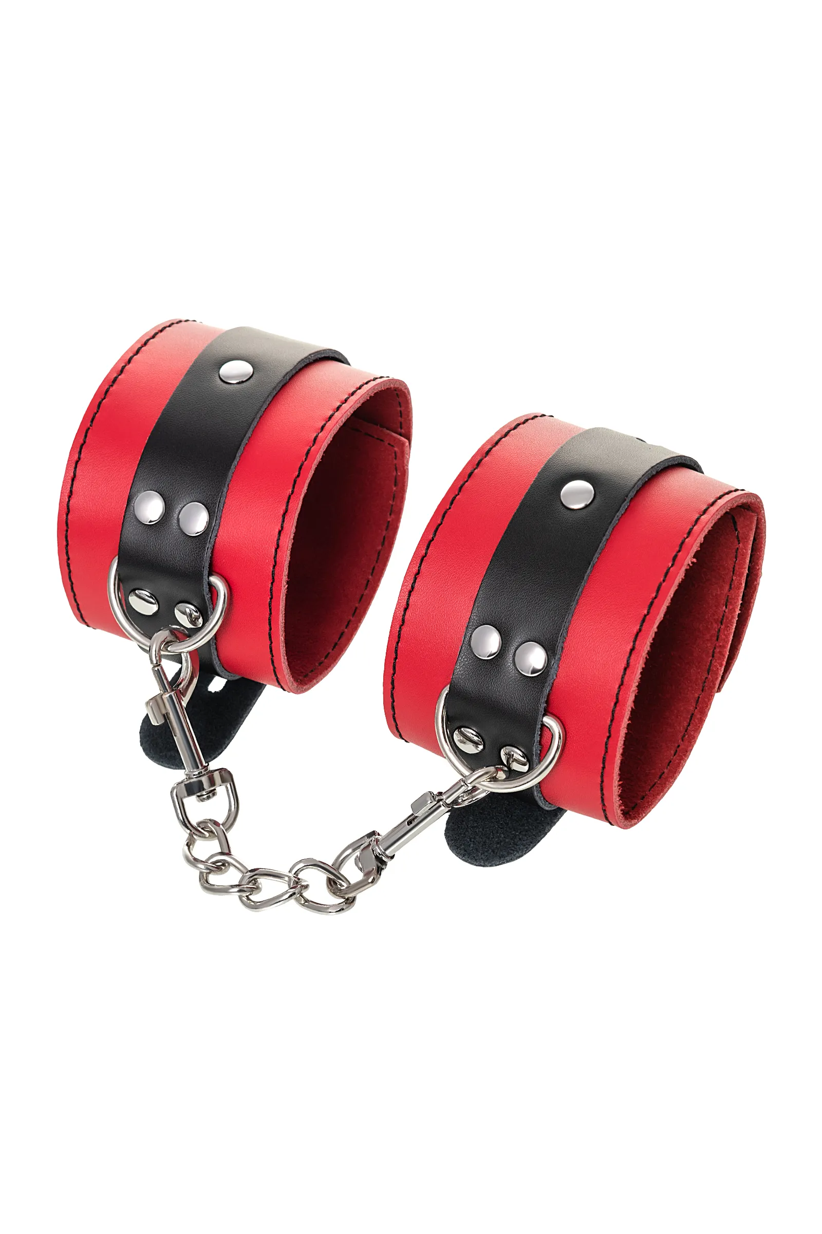 Оковы на ноги Оковы на ноги - волнующий воображение аксессуар, ведь это способ зафиксировать ноги партнера и получить полный доступ к его телу. Но не забудьте про стоп-слово. Оковы из мягкой натуральной кожи сочетают в себе элементы, возбуждающие страсть и фантазию: красный и черный цвета и отделка металлическими элементами. В них будет комфортно подчиняться и ощущать ограничение свободы действий. Не натирают и имеют надежную степень фиксации. Размер легко регулируется металлической пряжкой. С помощью металлической цепочки и карабинов можно фиксировать ноги вместе, либо дополнить игру цепочкой и сковать ноги в широко разведенном положении. Попробуйте полный комплект состоящий из ошейника, наручников и оков на ноги чтобы воплотить самые смелые фантазии. Эта пара - отличный вариант для начинающих в БДСМ-играх. Так почему бы не открыть для себя что-то новое? Длина оков 28 см Ширина оков 6 см Длина сцепки 15,5 см Материал: кожа, металл В фотосессии на модели использованы пэстис Theatre 705006