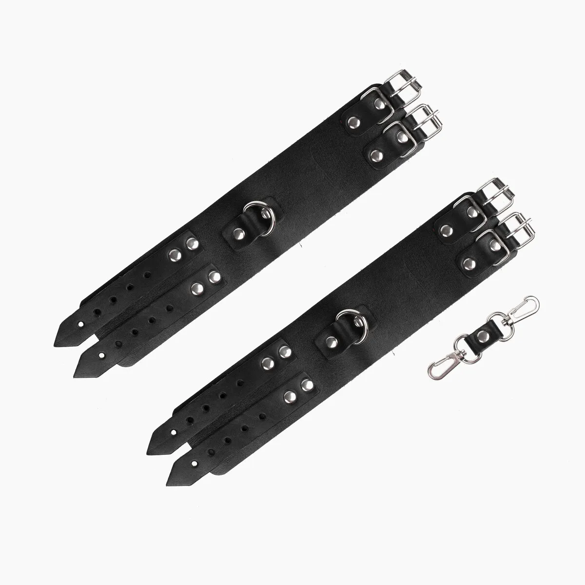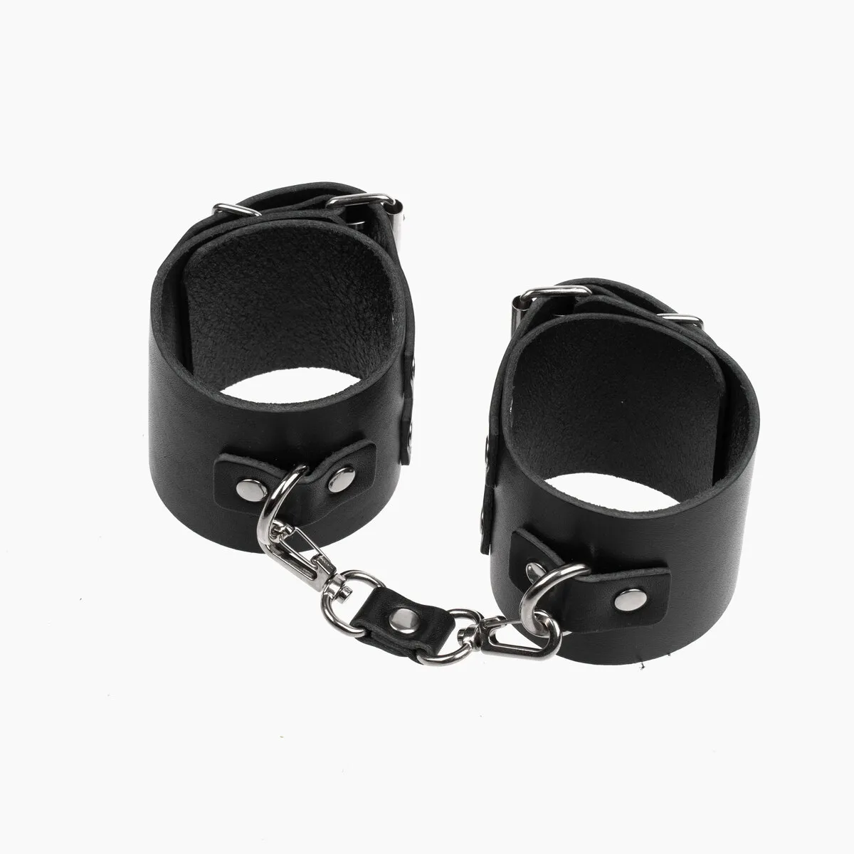 Теперь Вы можете быть уверены, что Ваш пленник не сбежит от Вас, если Вы обездвижите его с помощью этого БДСМ-аксессуара. Черные наножники декорированы металлическими клепками и соединены между собой при помощи цепочки. Ремешки с пряжками позволяют отрегулировать диаметр оков. Привнесите в Ваши интимные отношения немного разнообразия с помощью этого приспособления для сексуальных утех.