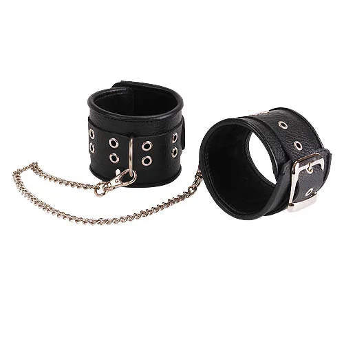—Оковы кожаные черные с широким ремешком, соединенные цепочкой длиной 35см 3072-1
