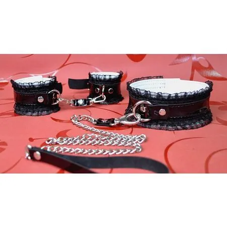 Внесите в свои сексуальные игры элемент БДСМ с этим великолепным набором, который состоит из очаровательного ошейника и наручников, соединенных между собой карабином (поводок в комплект не входит). Изделия декорированы изысканным кружевом, что сделает образ рабыни более женственным и возбуждающим. Неспособность двигать руками добавит в интимную жизнь толику остроты, а также новое чувство томительного волнения от невозможности прикрыться руками. Ваш Господин неустанно будет дарить Вам удовольствие, а Вы не сможете сопротивляться его воле, с радостью принимая все его ласки.