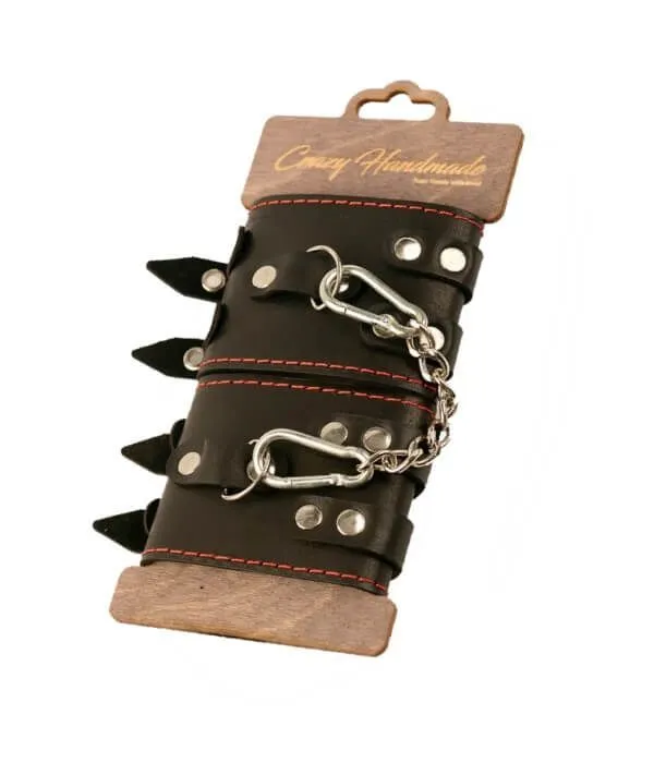 Наручники с двумя ремнями и черной подкладкой от бренда Pink Rabbit выполнены из натуральной кожи черного цвета и декорированы красной строчкой. Наручники позволят Вам получить новые ощущения от любовной игры и добавить в них остроты. Сковав руки своего партнера, Вы получите над ним власть, ведь он не сможет отмахиваться или активно сопротивляться Вашим ласкам. Вы сможете осуществить все свои тайные фантазии и попробовать новые позы, а также лучше узнать желания друг друга. К металлическим кольцам на оковах можно присоединить и другие аксессуары при помощи карабинов. Наручники регулируются по размеру при помощи ремешков с пряжками.