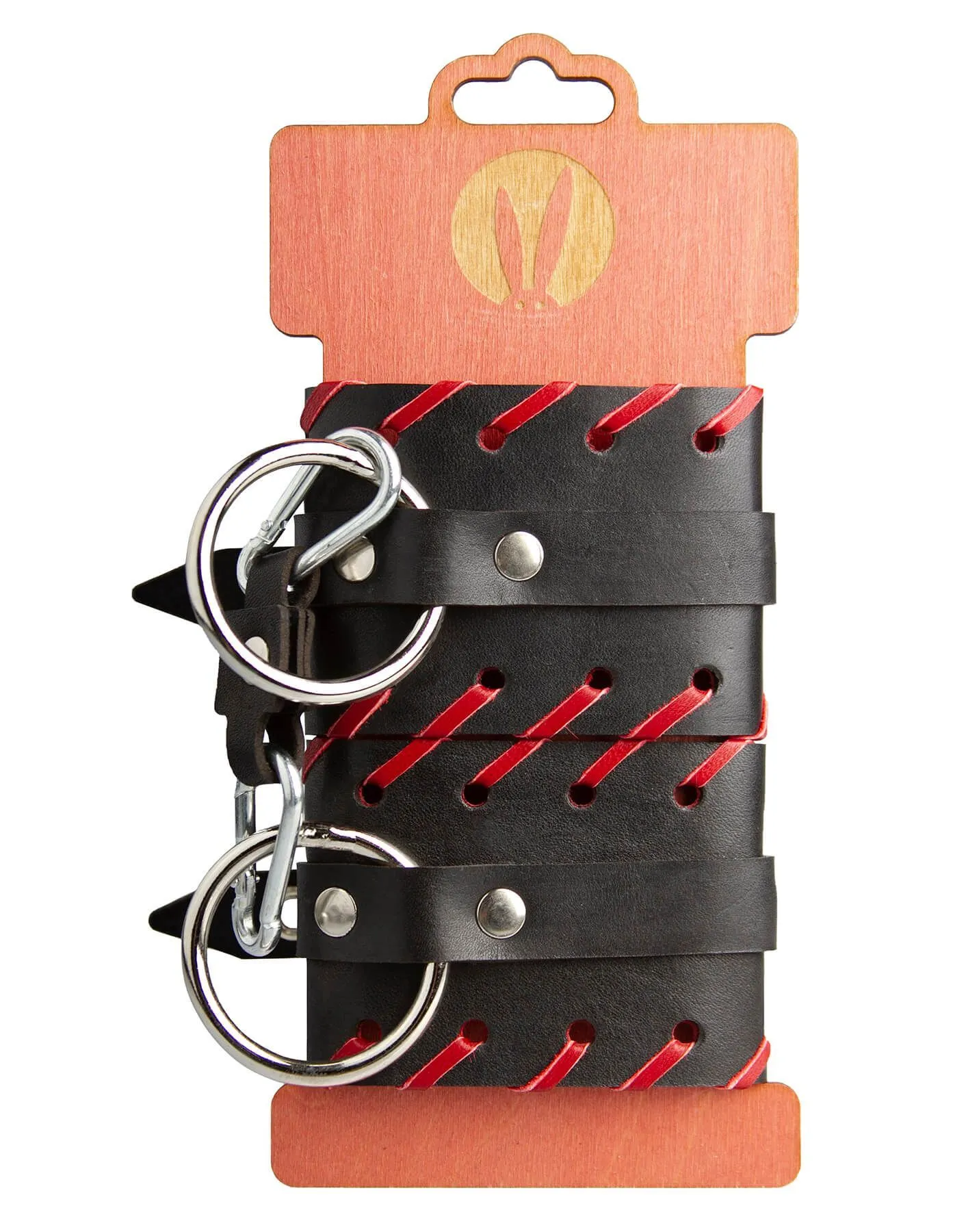 Наручники от бренда Pink Rabbit выполнены из натуральной кожи черного цвета и декорированы красной окантовкой. Этот аксессуар будет незаменим для тех, кто предпочитает игры с элементами БДСМ или просто хочет попробовать что-то новое в постели. Частично обездвижив руки своего партнера, Вы получите его в свое полное распоряжение, ведь он не сможет сопротивляться Вашим настойчивым ласкам. К широким металлическим кольцам на оковах можно присоединить и другие аксессуары при помощи карабинов. Наручники регулируются по размеру при помощи ремешка с пряжкой.