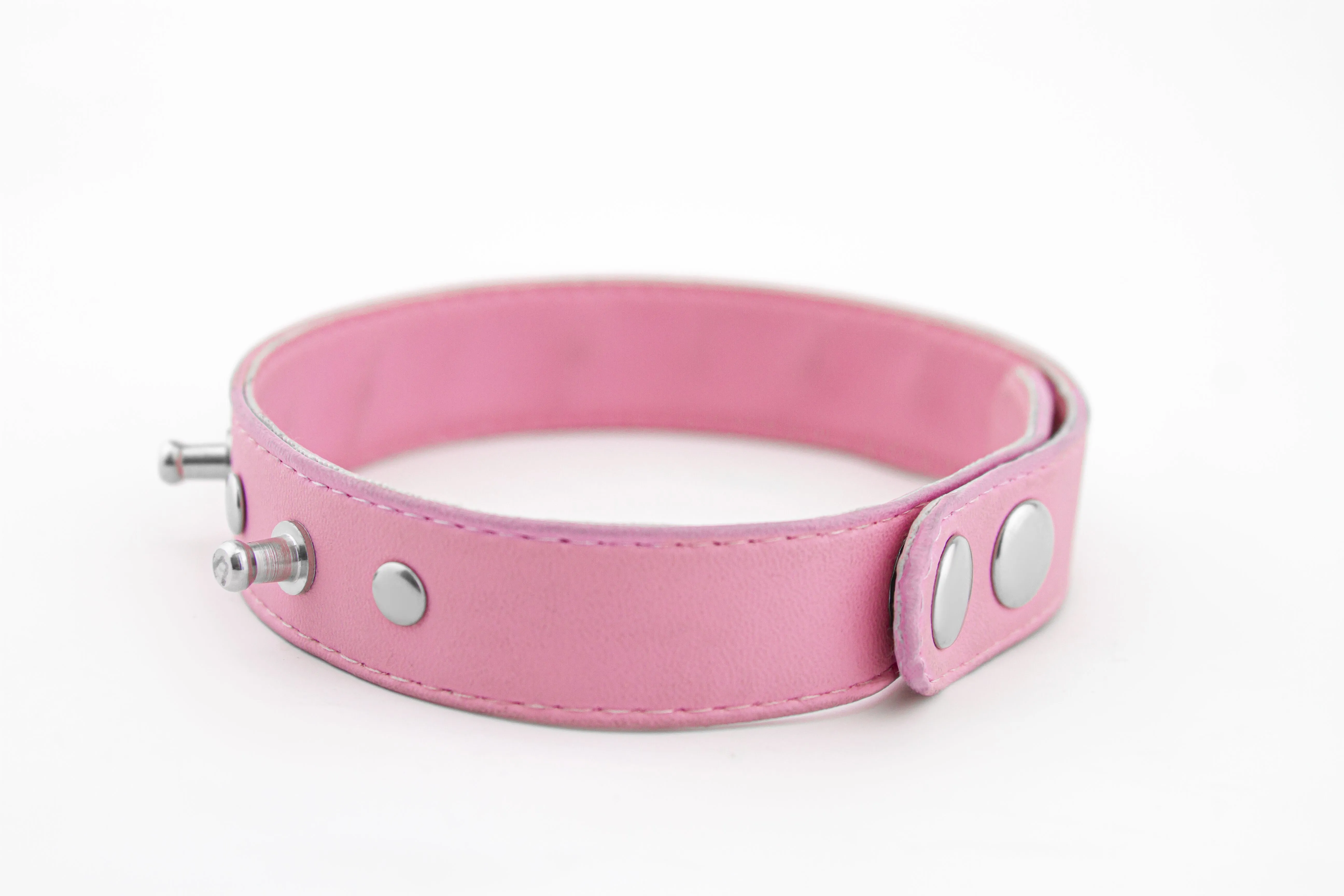 —Ошейник 69 Оттенков Розового с мет. шипами и клепками