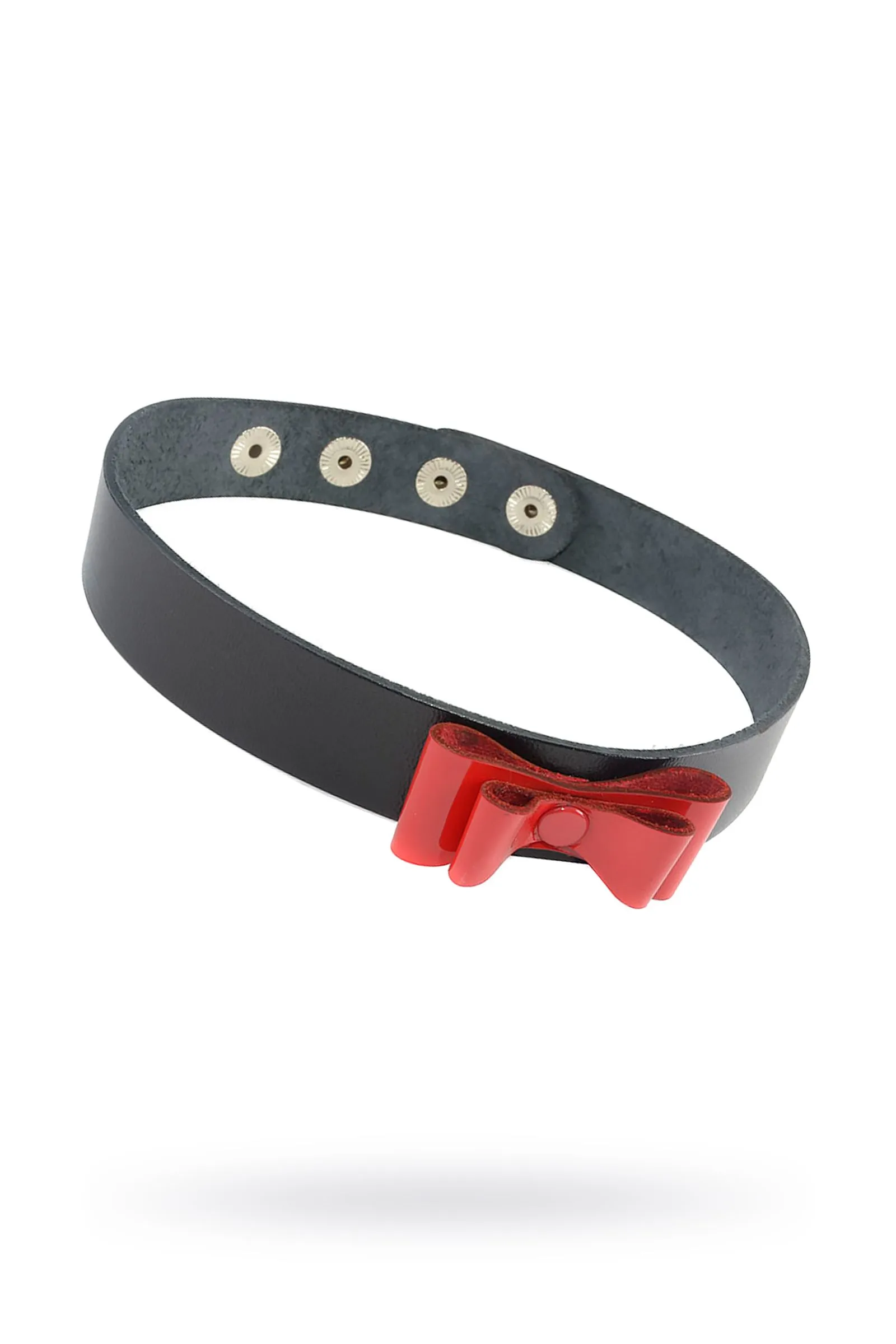 Ошейник BDSM – это атрибут покорности и полного доверия секс-партнёру. А предложив ошейник и получив согласие его надеть, приобретаете не только власть, но и огромную ответственность за другого. Какой бы ни был ошейник простой или вычурный, главное, это смысл, с которым Вы его преподносите партнёру. Простой и лаконичный ошейник чокер от Ситабелла, изготовлен из натуральной высококачественной кожи. Плотно прилегая к шее, узкой черной полосой, он элегантно украсит Вашу шею, сделав её ещё более сексуальной и притягательной. Украшение данного изделия является красный объемный бантик из лаковой красной кожи. Зафиксировать чокер на шее и отрегулировать по размеру можно при помощи кнопок, которые имеют никелевое покрытие. Ширина ошейника 2 см. Длина 41 см.