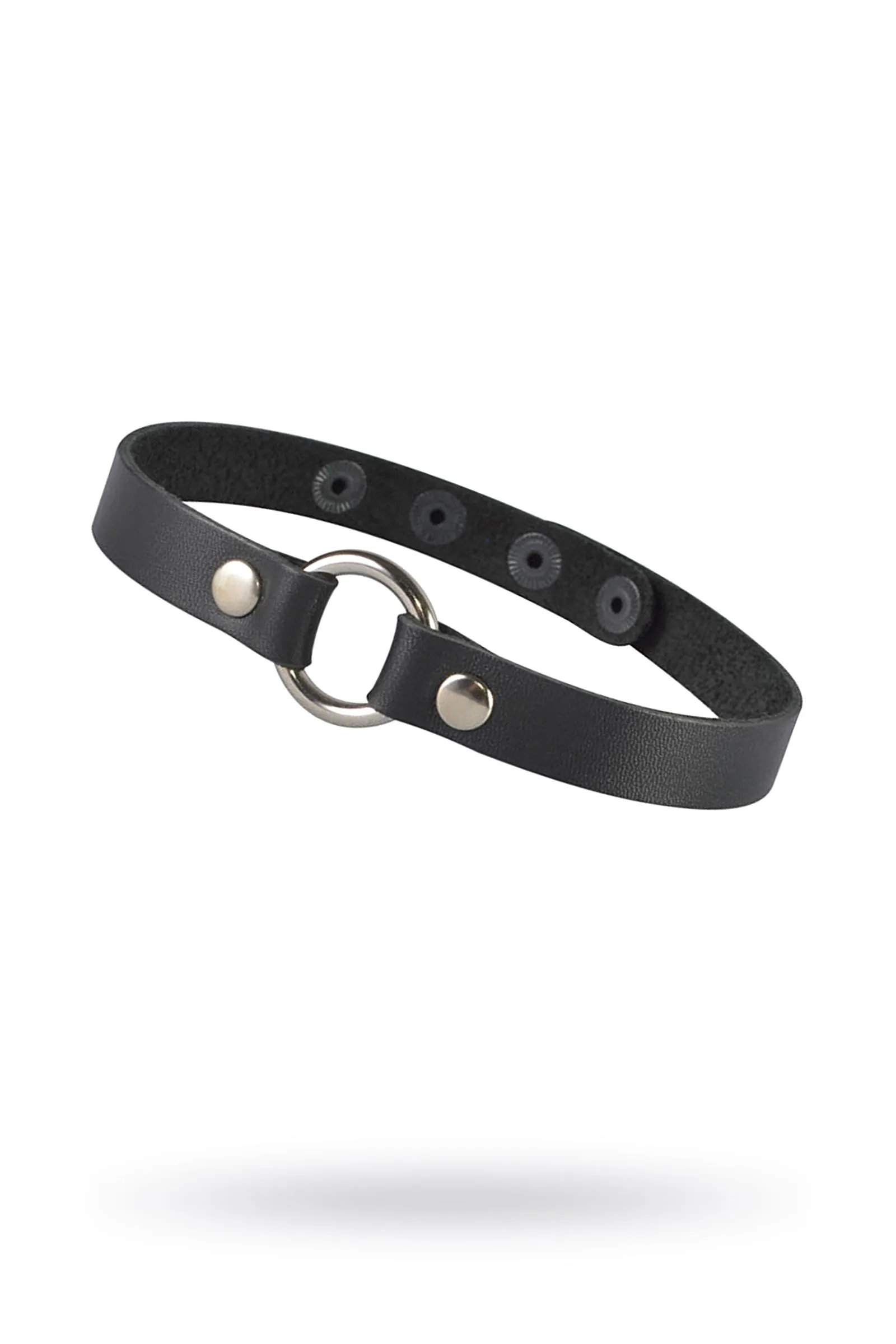 Сексуальный чокер из натуральной черной кожи с металлическим кольцом. Длина изделия 40 см, ширина 1,5 см. Диаметр кольца 2,8 см. Фурнитура имеет никелевое покрытие.