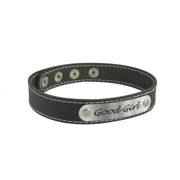 —Чокер Штучки-Дрючки «Good Girl» с белой строчкой, кожанный, чёрный