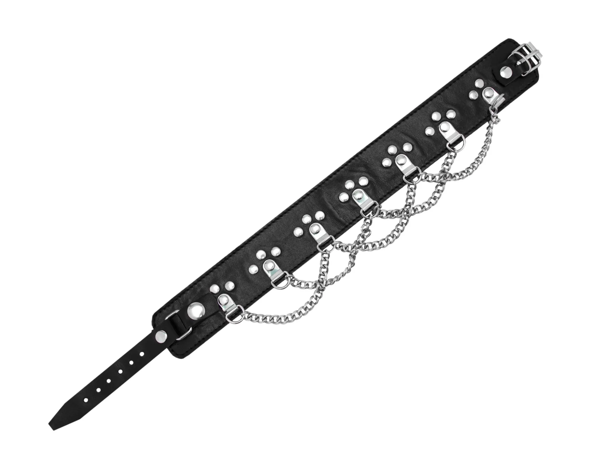 Ошейник узкий Подиум с шипами и цепочками, с подкладкой