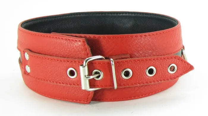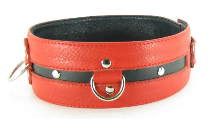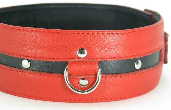 Оригинальный ошейник, в котором сочетаются красный и черный цвет. БДСМ-атрибут используют в откровенных властных играх. Стильный ошейник выполнен из качественной, мягкой кожи, с приятной на ощупь вставкой внутри. Украшен модными заклепками и имеет несколько колец для бандажа. БДСМ-атрибут регулируется при помощи ремешка с 5-ю отверстиями. Характеристики ошейника: цвет – красный с чёрным, материал – кожа, длина – 55 см, ширина – 5 см.