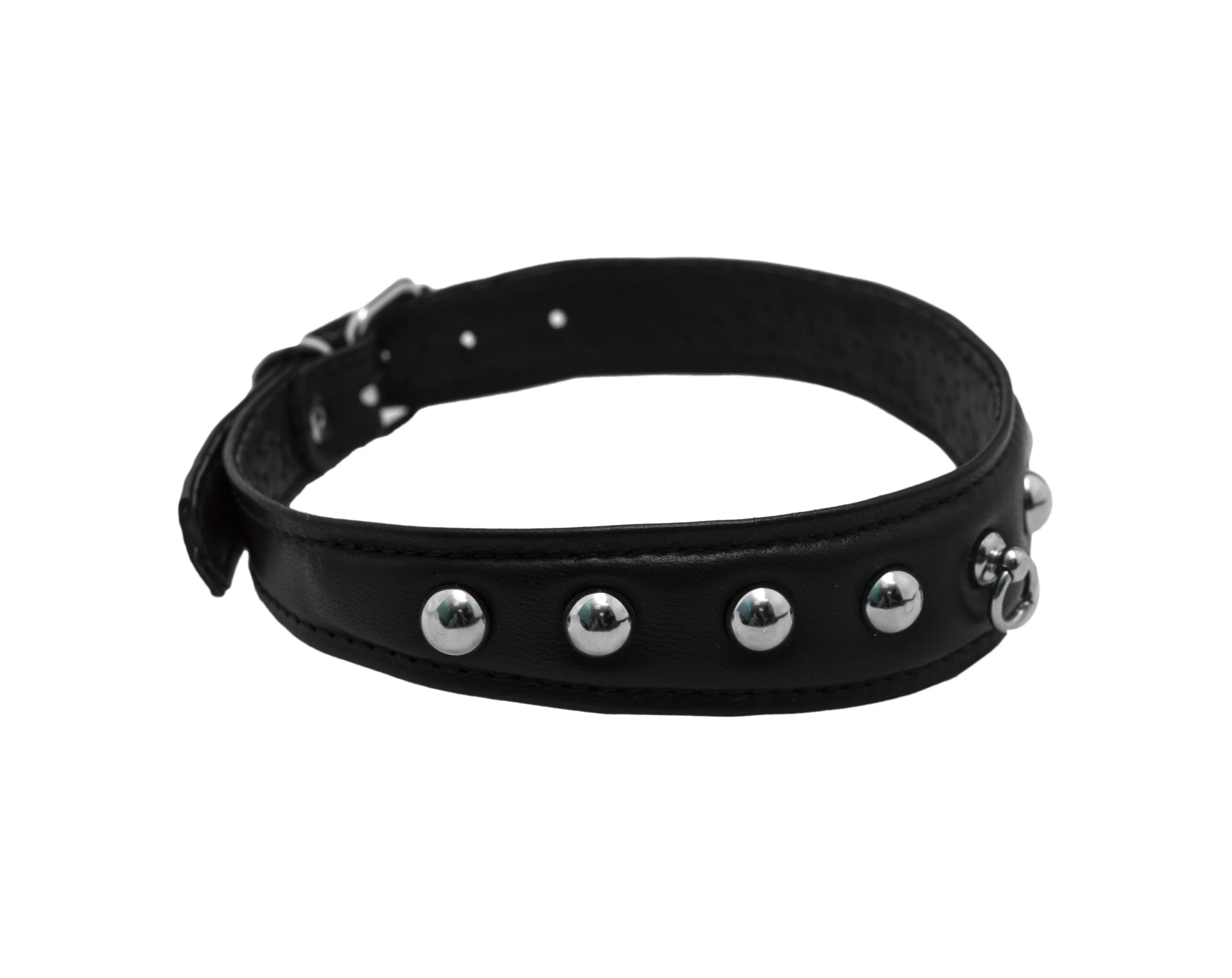Поверхность этого фигурного узенького ошейника от компании "Подиум" декорирована блестящими металлическими клепками-шипами с тупыми концами. Также у ошейника предусмотрено специальное колечко, за которое можно цеплять поводок или другие бондажные аксессуары при помощи цепи с карабином. Этот аксессуар особенно актуален для поклонников жестких сексуальных игр и БДСМ. Такой ошейник будет великолепно смотреться с любым выбранным Вами эротическим костюмом и прекрасно акцентирует внимание на нежной шейке.
