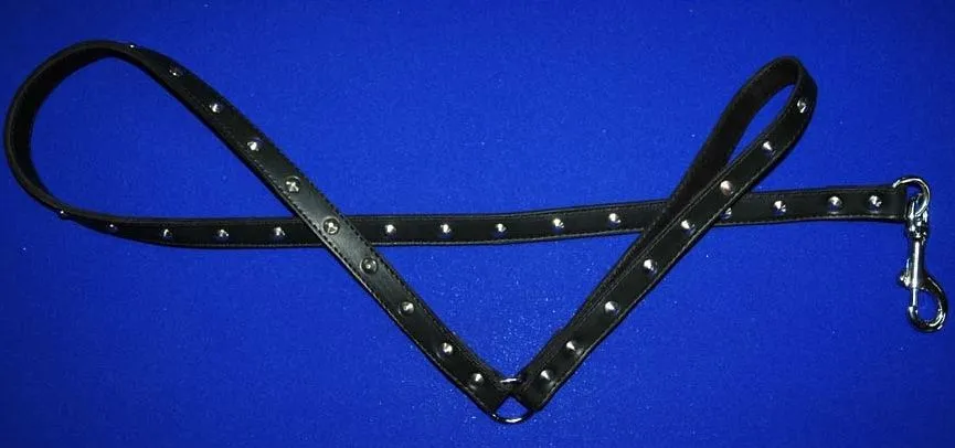 Клепаный поводок с кожаной рукояткой-петлей от компании Beastly понравится любителям игр с элементами БДСМ. Он пристегивается к кольцу на ошейнике с помощью карабина. Поводок имеет по всей своей длине металлическую фурнитуру, делающую его более эффектным. Подчините партнера своим желаниям или подчинитесь ему сами с этим великолепным аксессуаром.