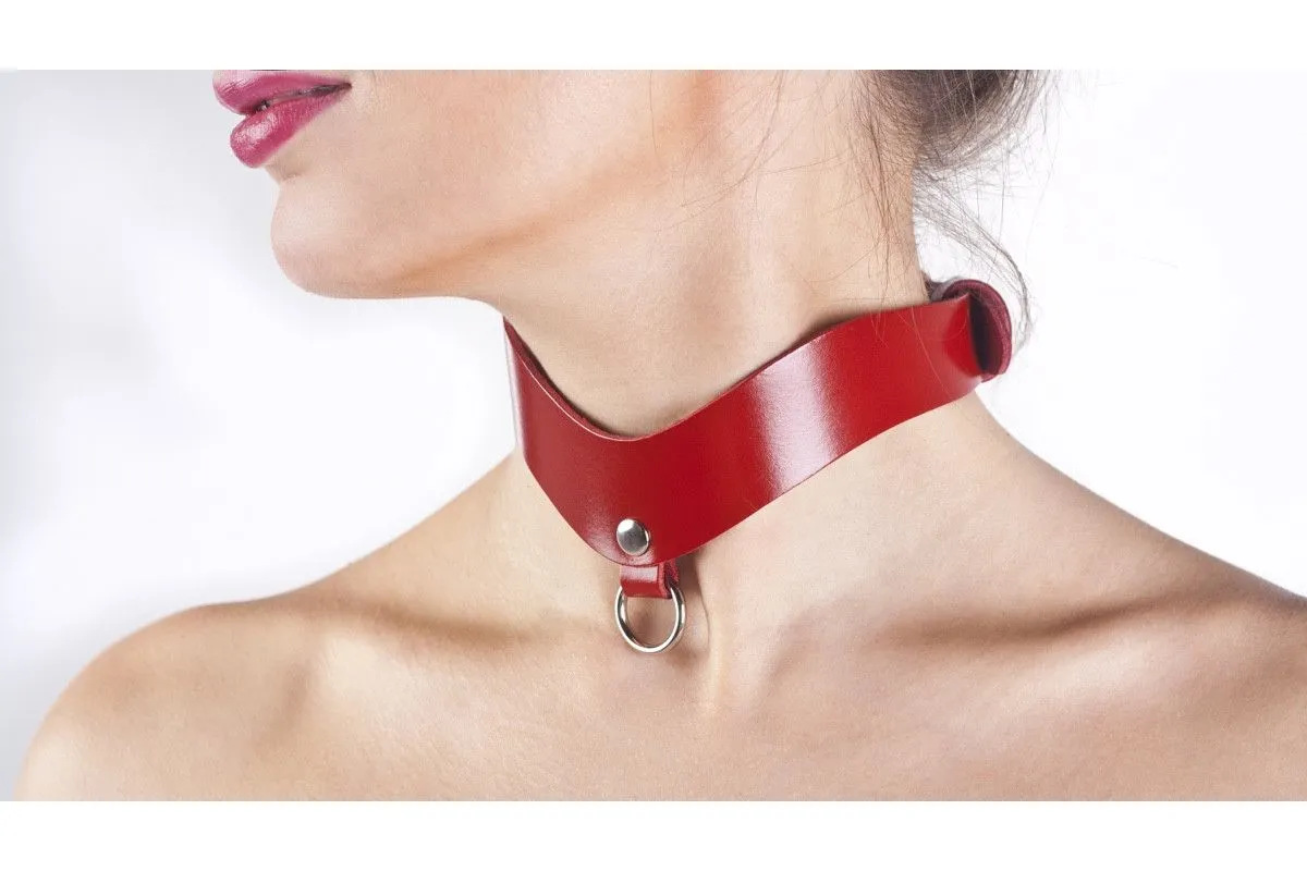 Ошейник премиум с кольцом красный