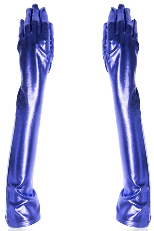 Длинные блестящие синие перчатки. Идеально дополнят ваш эротический или праздничный образ.