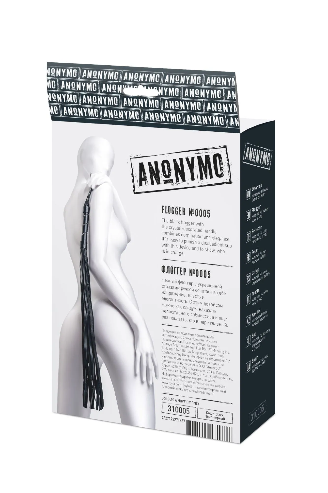 —Флоггер Anonymo #0005, PU кожа, черный, 64 см