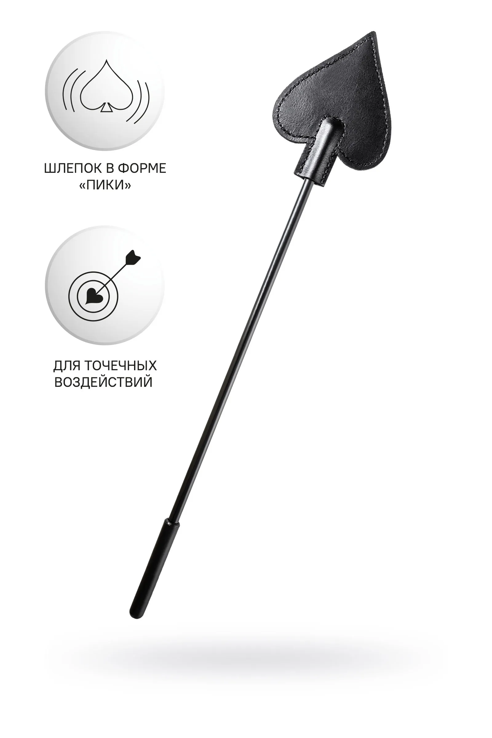 Доминирование и подчинение с помощью ограничения свободы — это еще не все, что вы можете сделать друг с другом. Черный стек с наконечником в форме сердечка-пики пригодится для ощутимого наказания непослушного партнера. Хлесткие точечные шлепки или указка – заигравшийся сабмиссив быстро поймет свою ошибку. Каждый неверный шаг, звук или поворот головы будет немедленно наказан с помощью жесткого стека из PU кожи. Сочетание напряжения, власти и элегантности – с этим стеком можно наказать провинившегося сабмиссива и еще раз продемонстрировать кто в паре главный. Материал: PU кожа Цвет: черный Общая длина: 36 см Длина наконечника: 8 см Ширина наконечника: 7 см