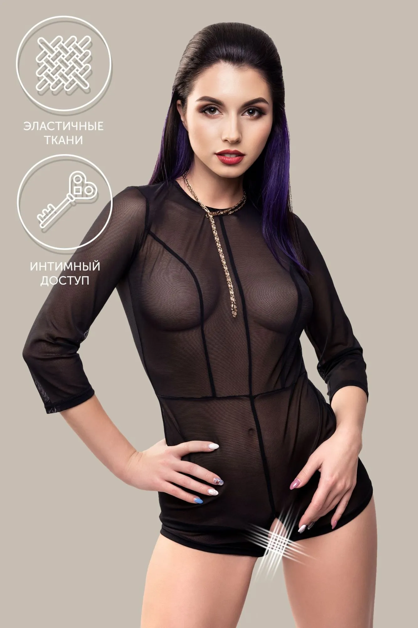 Линия провокационного эротического белья WANAME® Apparel – для женщин, которые хотят наслаждения и не скрывают этого. Эротический комбинезон «При́сио́сити» (англ. Preciosity – «Изысканность») из тонкой прозрачной эластичной сетки облегает фигуру, ощущается невесомым, не сковывает движений, но визуально меняет силуэт. Шелковистая поверхность материала дарит приятные ощущения при прикосновении. Современные элементы дизайна тешат женское самолюбие. Деликатные вертикальные швы акцентируют внимание на плавных изгибах тела и создают силуэтную посадку. Горизонтальный шов визуально подчеркивает талию. Обтягивающие рукава добавляют фигуре грациозности. Застежка на шее, открытая спина и эротический доступ подчеркивают чувственный образ. Модели белья Waname® Apparel эксклюзивны, разработаны и произведены в России с учетом предпочтений российских покупательниц.