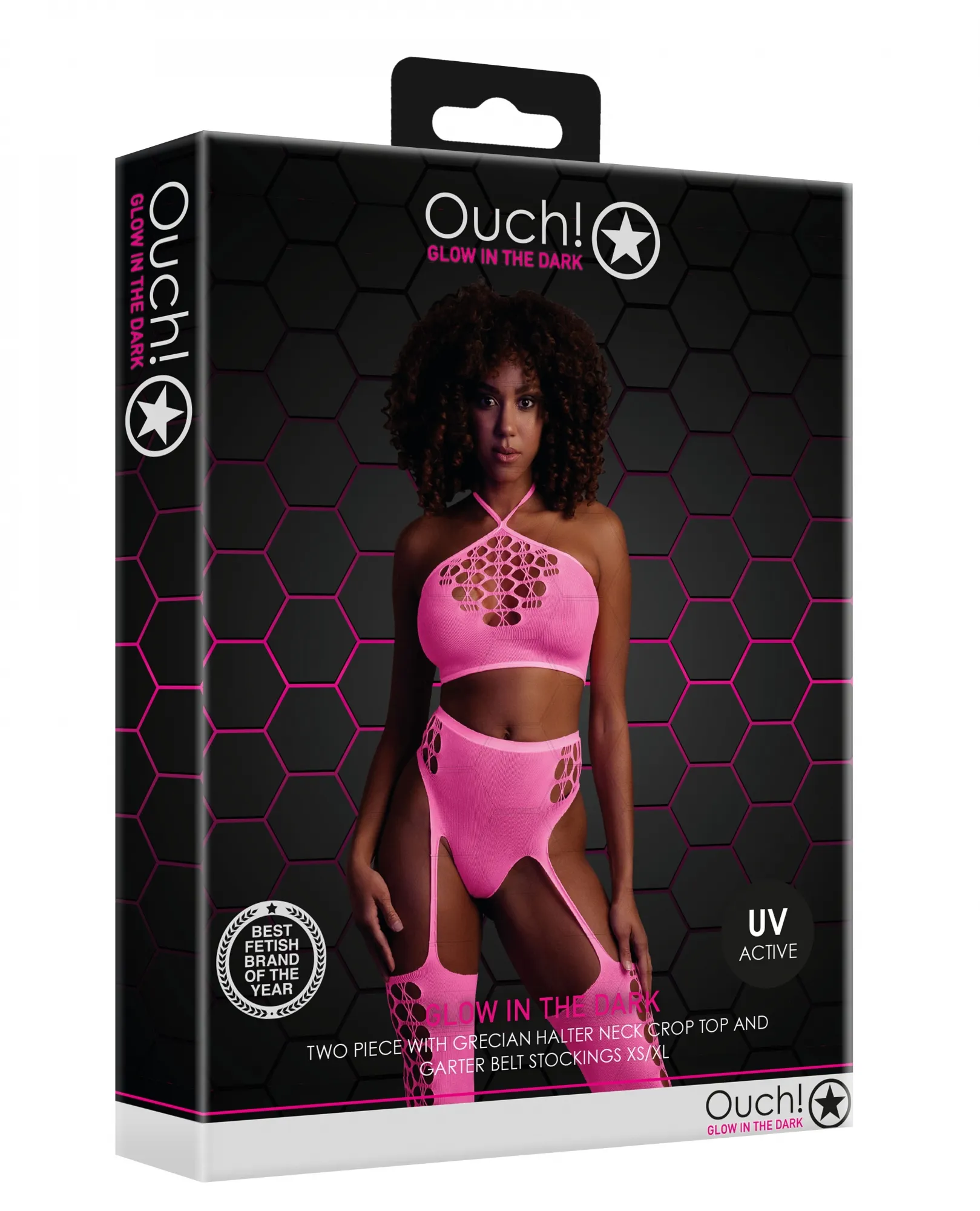 Шикарный неоновый комплект из трусиков с гартером и чулками и топа. Изделия изготовлены из плотной сетки и декорированы красивым сексуальным узором притягивающим взгляд. Такое белье скрывает недостатки, подчеркивает достоинства фигуры и будет шикарно смотреться как с публичным нарядом, так и в спальне.