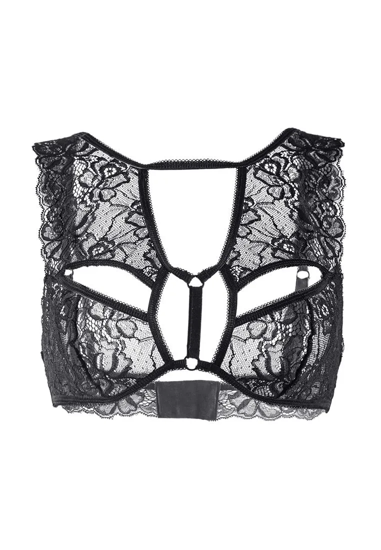 Мягкий кружевной топ Erolanta® Marisa с декоративными вырезами, стрепами и перемычками. Свободный ажурный край. Регулируемые бретели. Многорядная застежка на спине. *Допускается замена кружева на аналогичное. На видео бралетт Erolanta® Marisa дополнен идеально сочетающимся трусиками Erolanta® Julia.