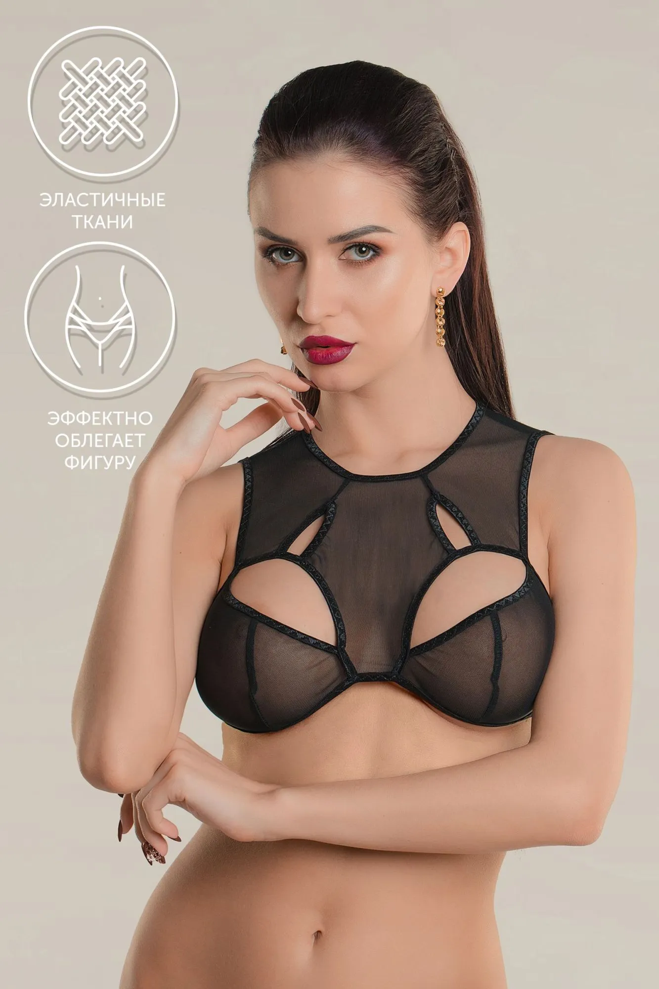 Линия провокационного эротического белья WANAME® Apparel – для женщин, которые достойны наслаждения и не скрывают этого. Бралетт с фигурными вырезами «Дэ́ликаси» (англ. Delicacy – «Деликатность») из тонкой эластичной сетки эффектно облегает фигуру. Ощущается совсем невесомым, не сковывает движений, но визуально меняет силуэт. Шелковистая поверхность материала дарит приятные ощущения при прикосновении. А современные элементы дизайна бралетт тешат женское самолюбие. Фигурные вырезы притягивают взгляд к нежной коже бюста и зрительно добавляют полноту груди. Необычный крой, регулируемые бретели, застежка на шее и двухрядная застежка на спине обеспечивают идеальную посадку. Открытая спина – важная деталь чувственного образа. Белье Waname® Apparel эксклюзивно, разработано и произведено в России с учетом предпочтений российских покупательниц. На видео браллет Waname® Delicacy дополнен юбкой Waname® Evenness.