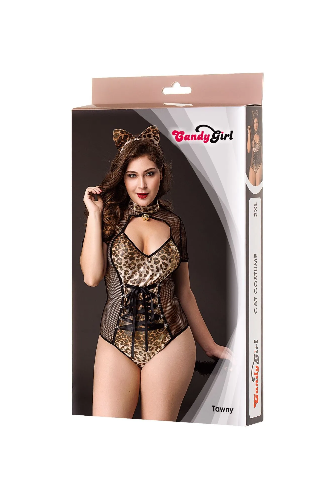 —Костюм кошки Candy Girl Tawny (боди, ушки) черно-леопардовый, 2XL