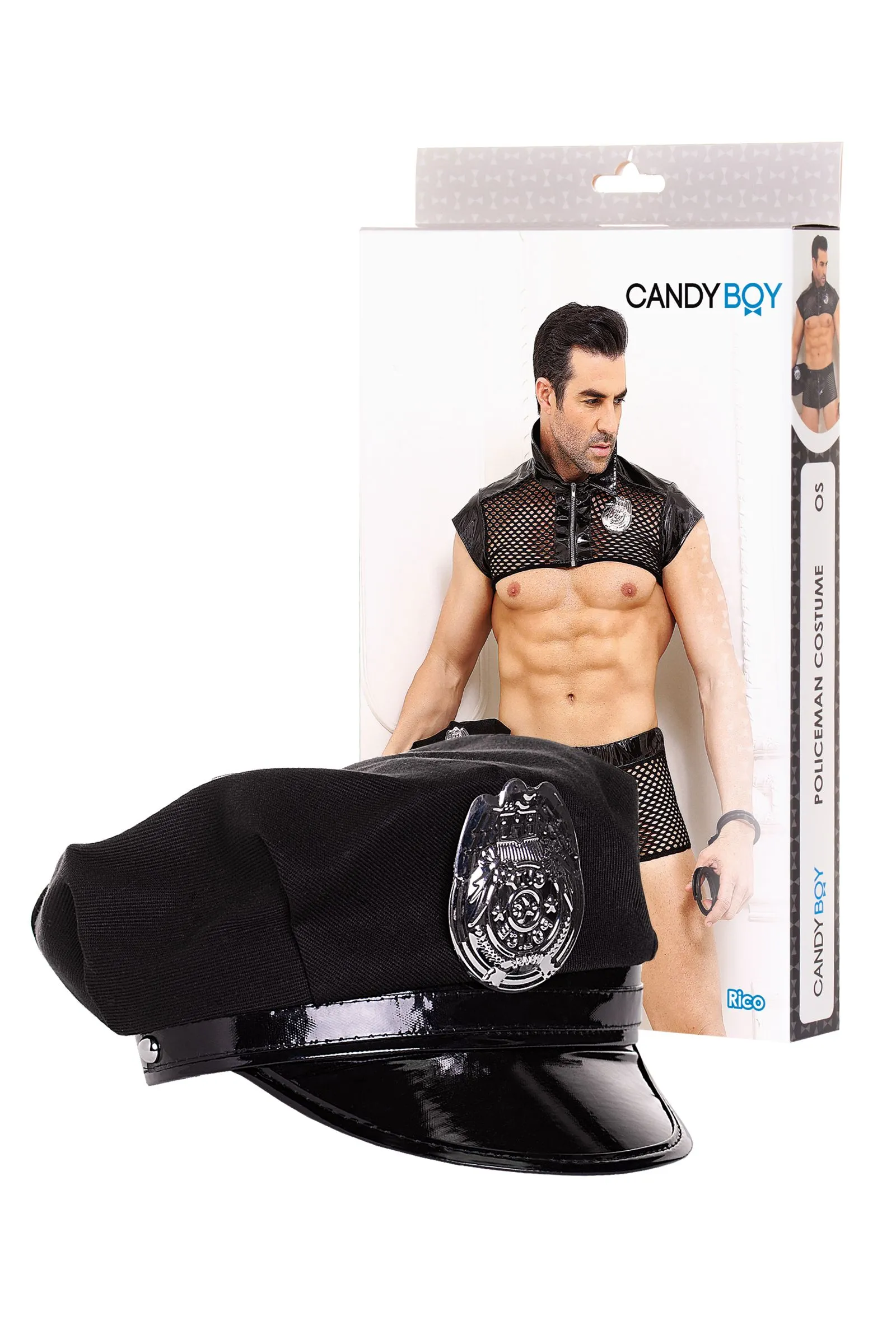 Костюм полицейского Candy Boy Rico (топ, боксеры, головной убор, наручники), черный, OS