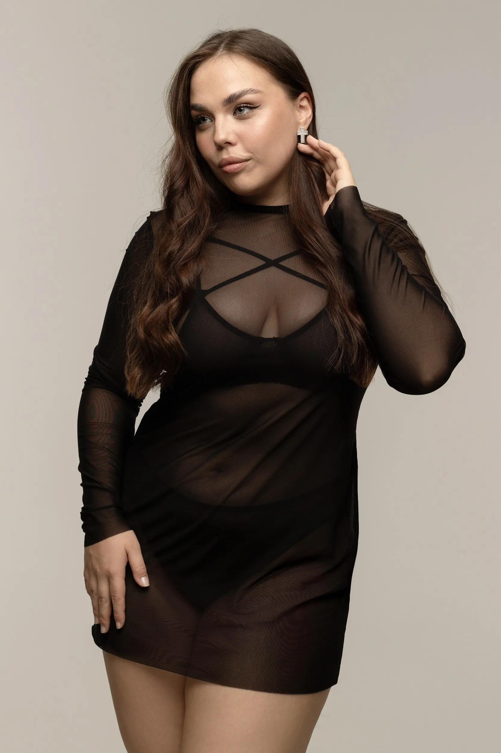 Платье PinkRabbit из тончайшей сеточки хорошо тянется и поэтому идеально садится на фигуру. Устраиваете романтический вечер дома с любимым мужчиной? Наденьте платье PinkRabbit поверх кружевного комплекта белья и не сможет оторвать взгляда от вас.
