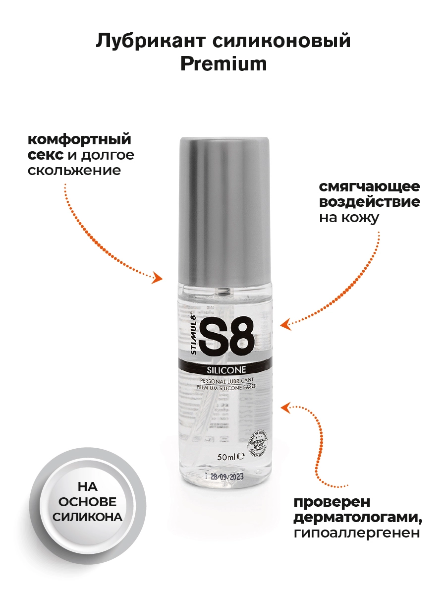 Универсальная смазка на основе силикона Premium от Stimul8 - это комфортный секс, долгое скольжение и никакого вреда для кожи.