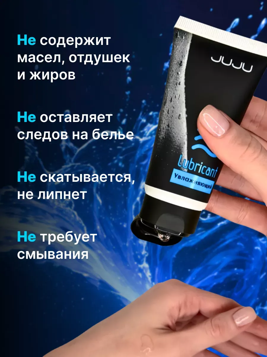 Приятное и нежное увлажнение осуществляет лубрикант JUJU увлажняющий. Входящий в состав лубриканта гиалуронат натрия оказывает глубокий увлажняющий эффект, пантенол заживляет и устраняет любые болезненные ощущения. Средство подходит для применения с презервативом и легко смывается с тела. Подходит для чувствительной кожи и помогает справиться с вагинальной сухостью. Состав: вода очищенная, глицерин, ПЭГ-400, метилпарабен,этилпарабен в пропиленгликоле, гидроксиэтилцеллюлоза, пантенол, гиалуронат натрия, сополимер акрилатов, триэтаноламин, ЭДТА  срок годности-3 года.